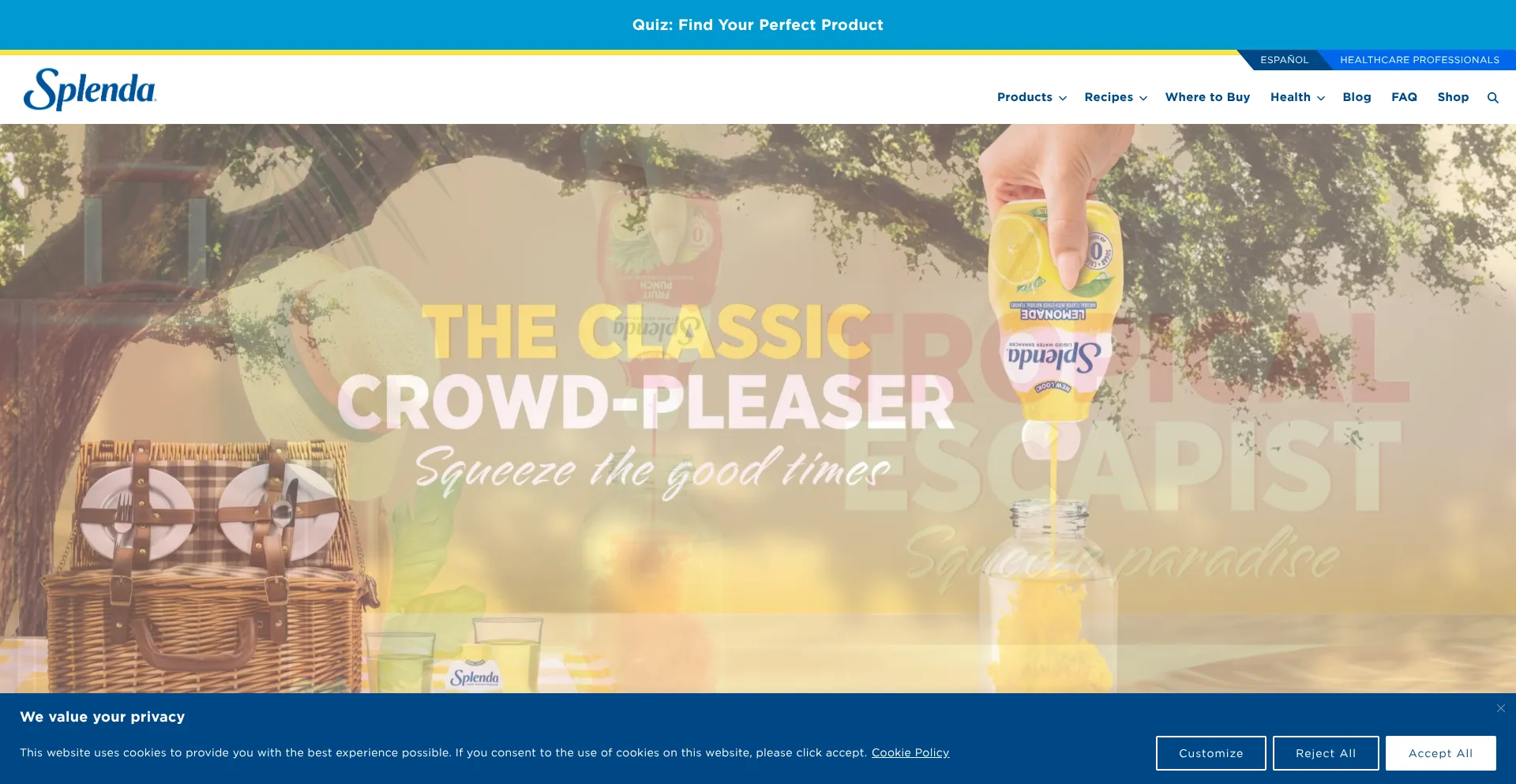 The website implements cookie consent mechanisms in compliance with privacy regulations such as GDPR or CCPA. This demonstrates that splenda.com adheres to data protection standards and provides users with control over personal data collection practices.