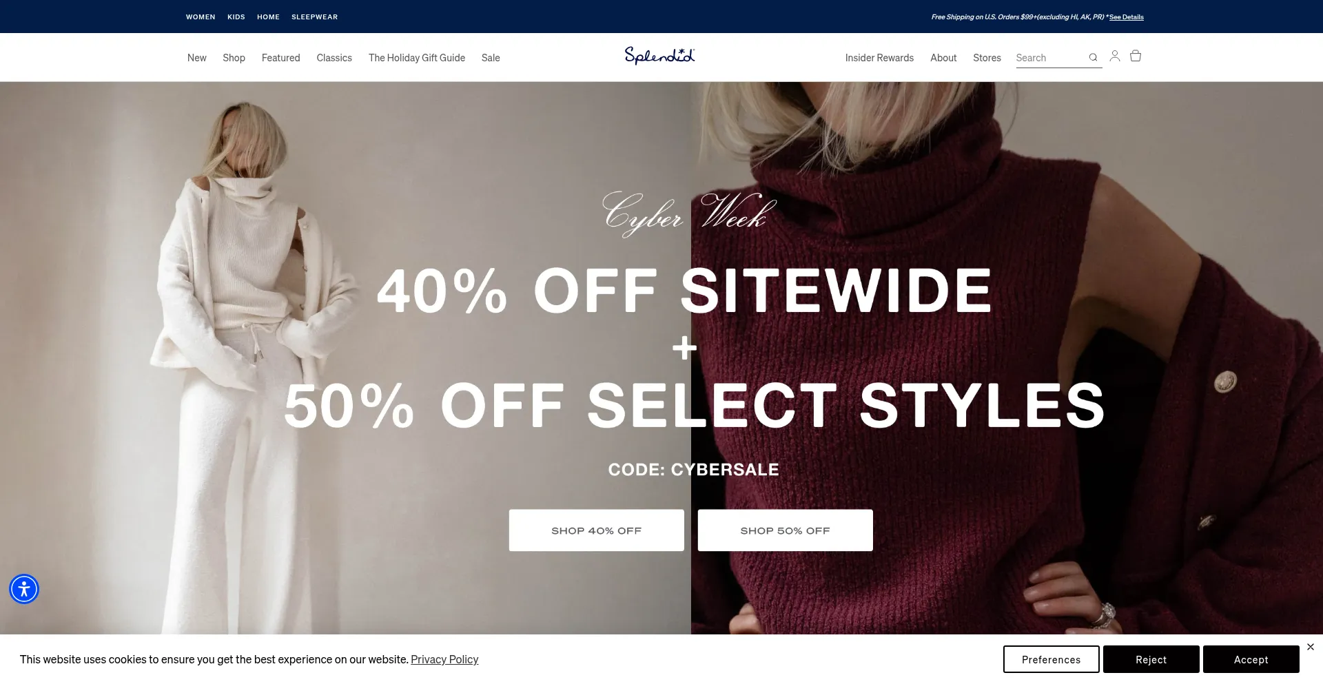 Analysis indicates that splendid.com operates as an e-commerce platform facilitating online transactions for goods or services. The website implements shopping cart functionality, payment processing systems, and product catalog features typical of commercial retail operations.