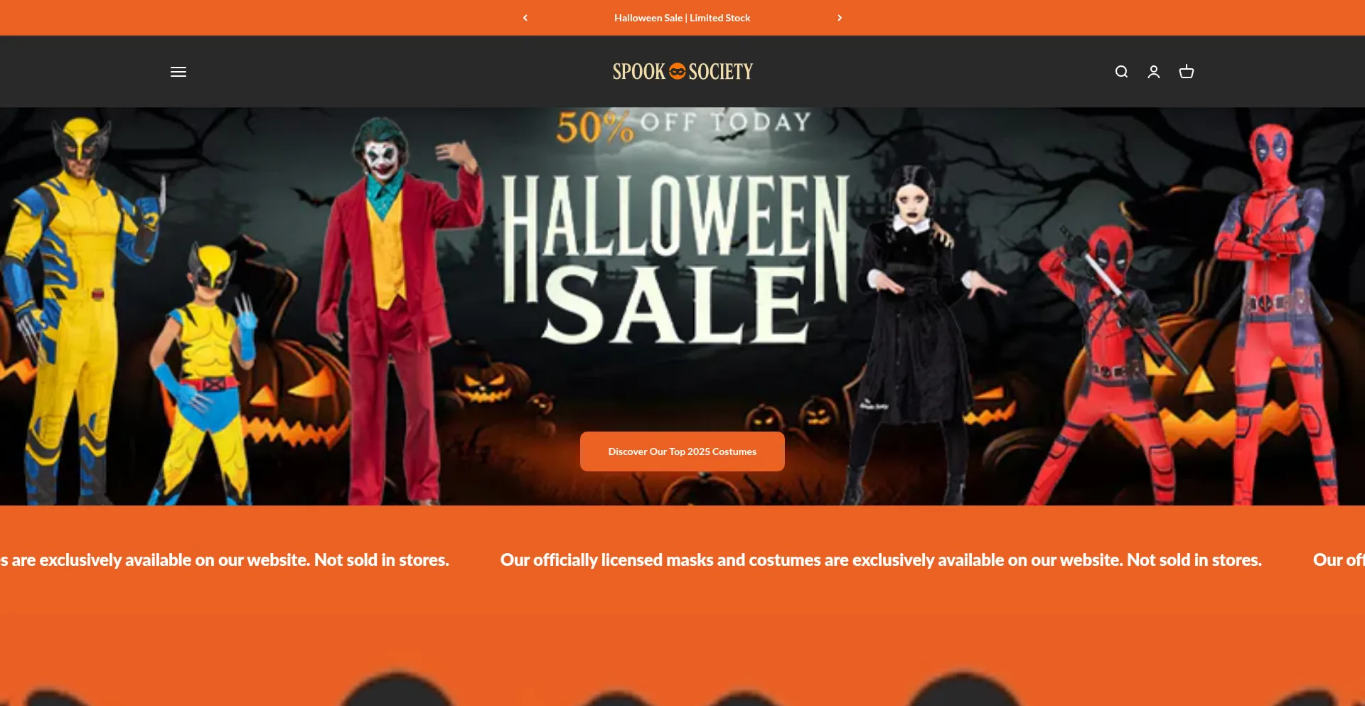 The spooksociety.com website utilizes free e-commerce platform solutions, which may indicate cost-conscious operations but could also suggest limitations in security features, customer support, or advanced functionality compared to enterprise-grade solutions.