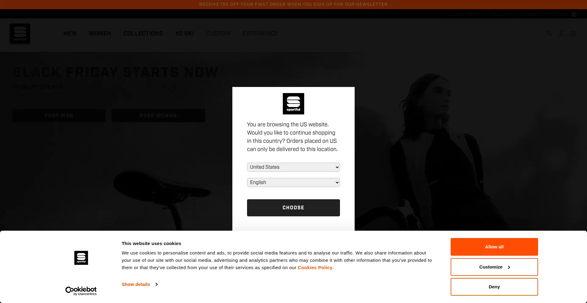 The website implements cookie consent mechanisms in compliance with privacy regulations such as GDPR or CCPA. This demonstrates that sportful.com adheres to data protection standards and provides users with control over personal data collection practices.