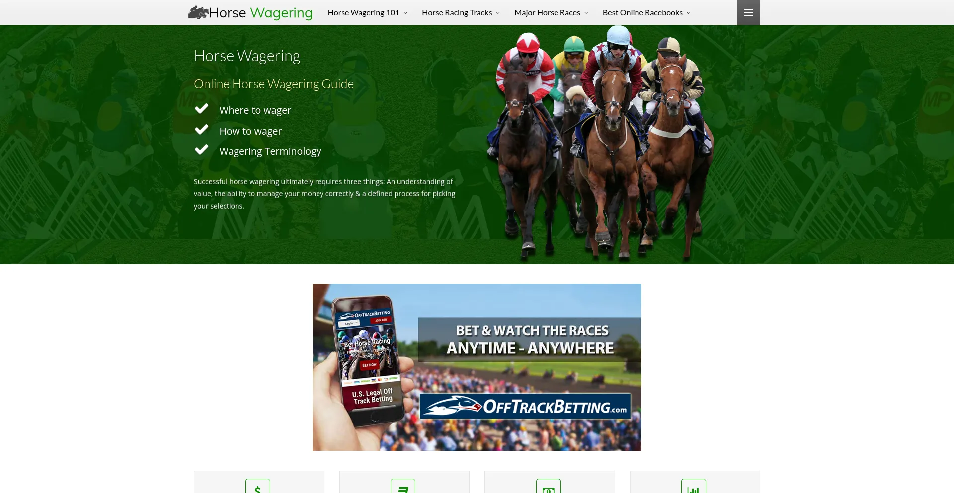 Horse Wagering Guide of Horse Betting Tips, News, Strategies & Terminology. Reviews of Best Online Horse Wagering Sites.