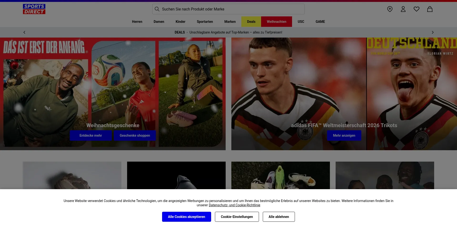 The website implements cookie consent mechanisms in compliance with privacy regulations such as GDPR or CCPA. This demonstrates that sportsdirect.de adheres to data protection standards and provides users with control over personal data collection practices.