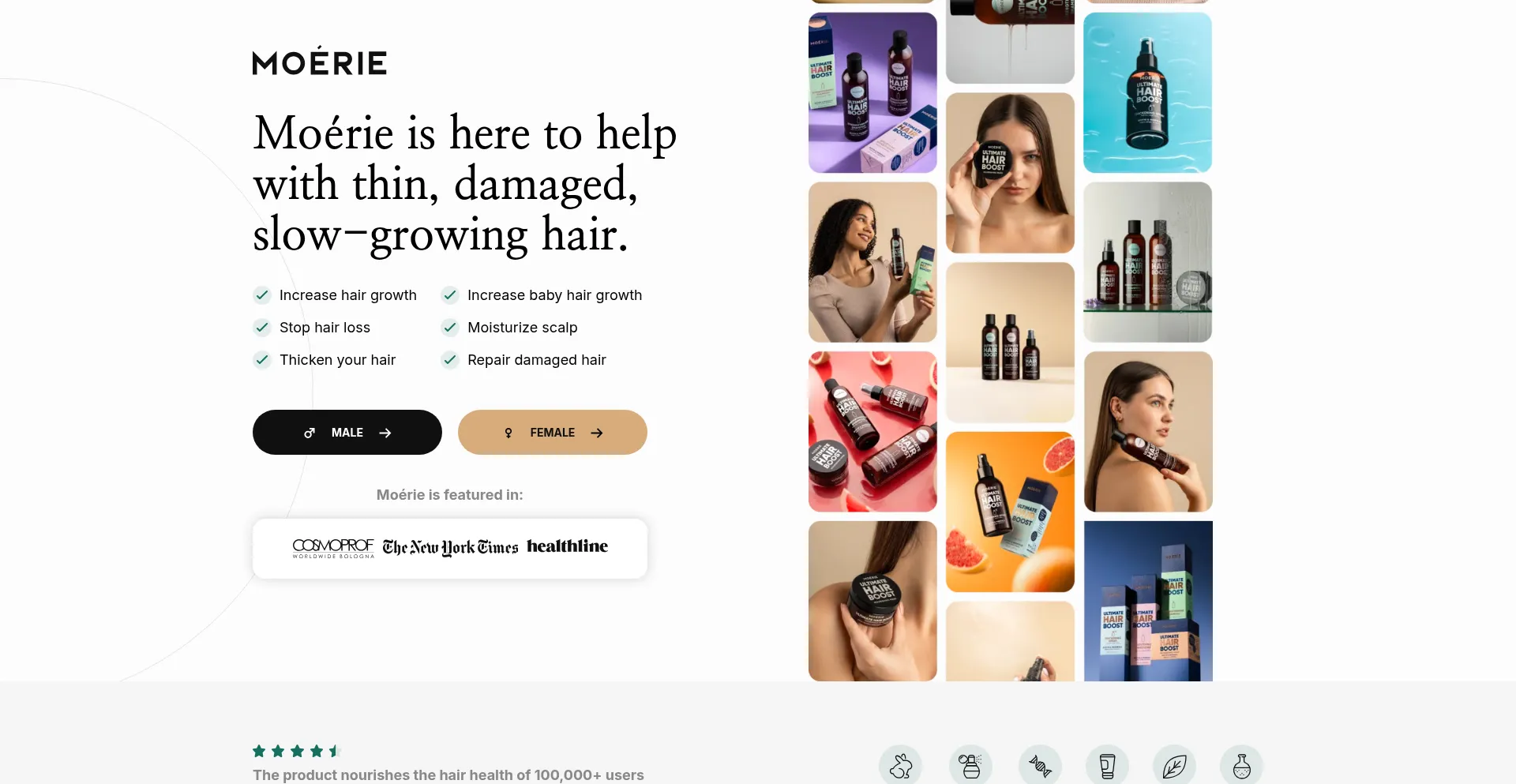 Hair growth products. Natural ingredients only, created to combat hair loss and boost healthy growth. Take a free quiz to learn more about your hair needs.