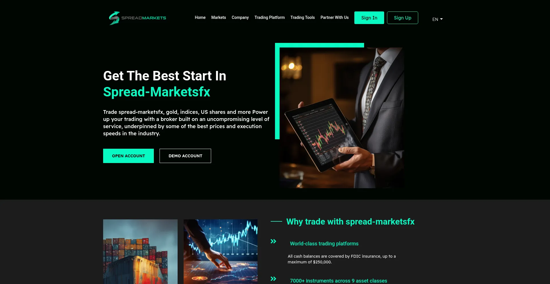 The spread-marketsfx.com website contains incomplete elements including placeholder content, unfinished features, or development artifacts, indicating ongoing construction or maintenance. This may reflect inadequate quality assurance processes or premature deployment, potentially affecting site reliability and user experience.