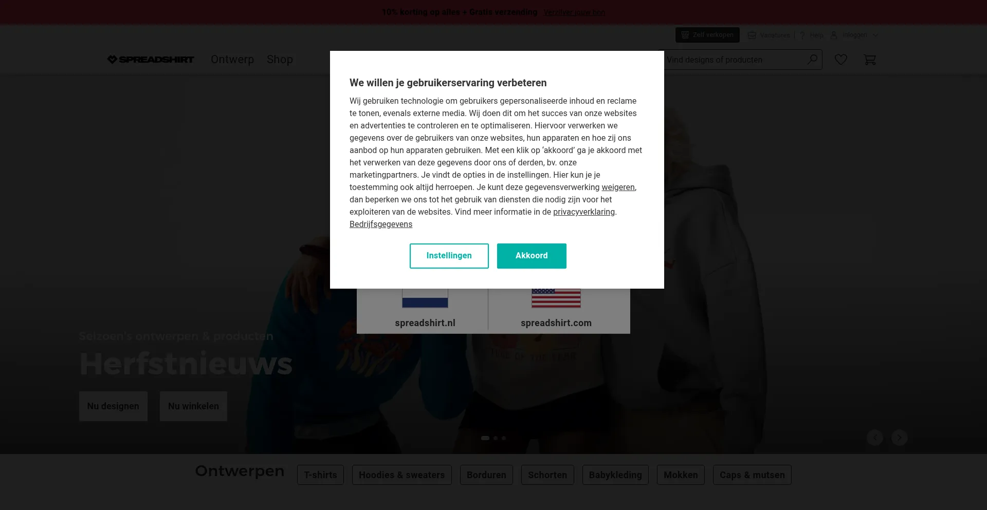The website implements cookie consent mechanisms in compliance with privacy regulations such as GDPR or CCPA. This demonstrates that spreadshirt.nl adheres to data protection standards and provides users with control over personal data collection practices.