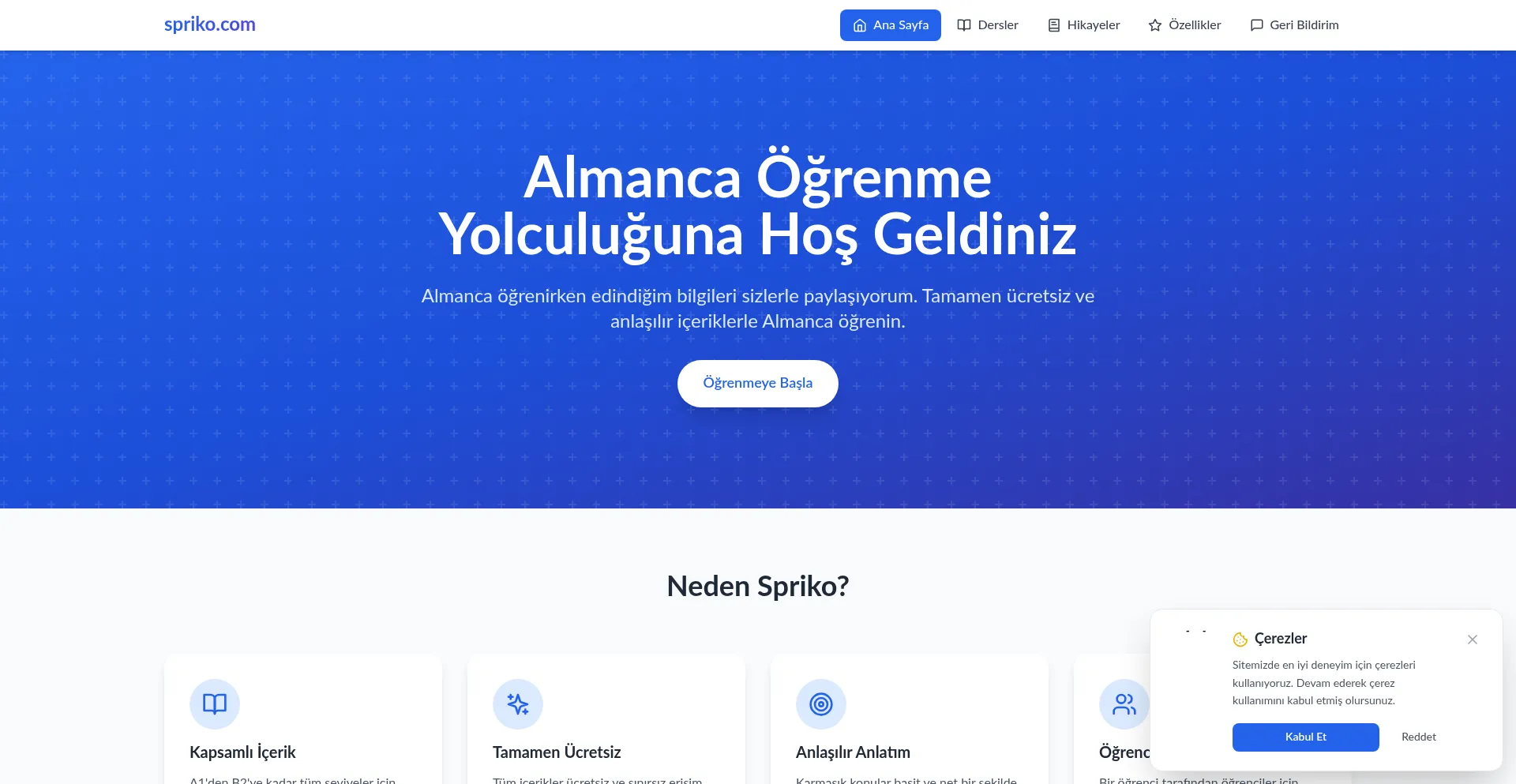 Spriko Almanca - Ücretsiz Almanca Öğrenme Platformu | A1-B2 Seviye Dersler