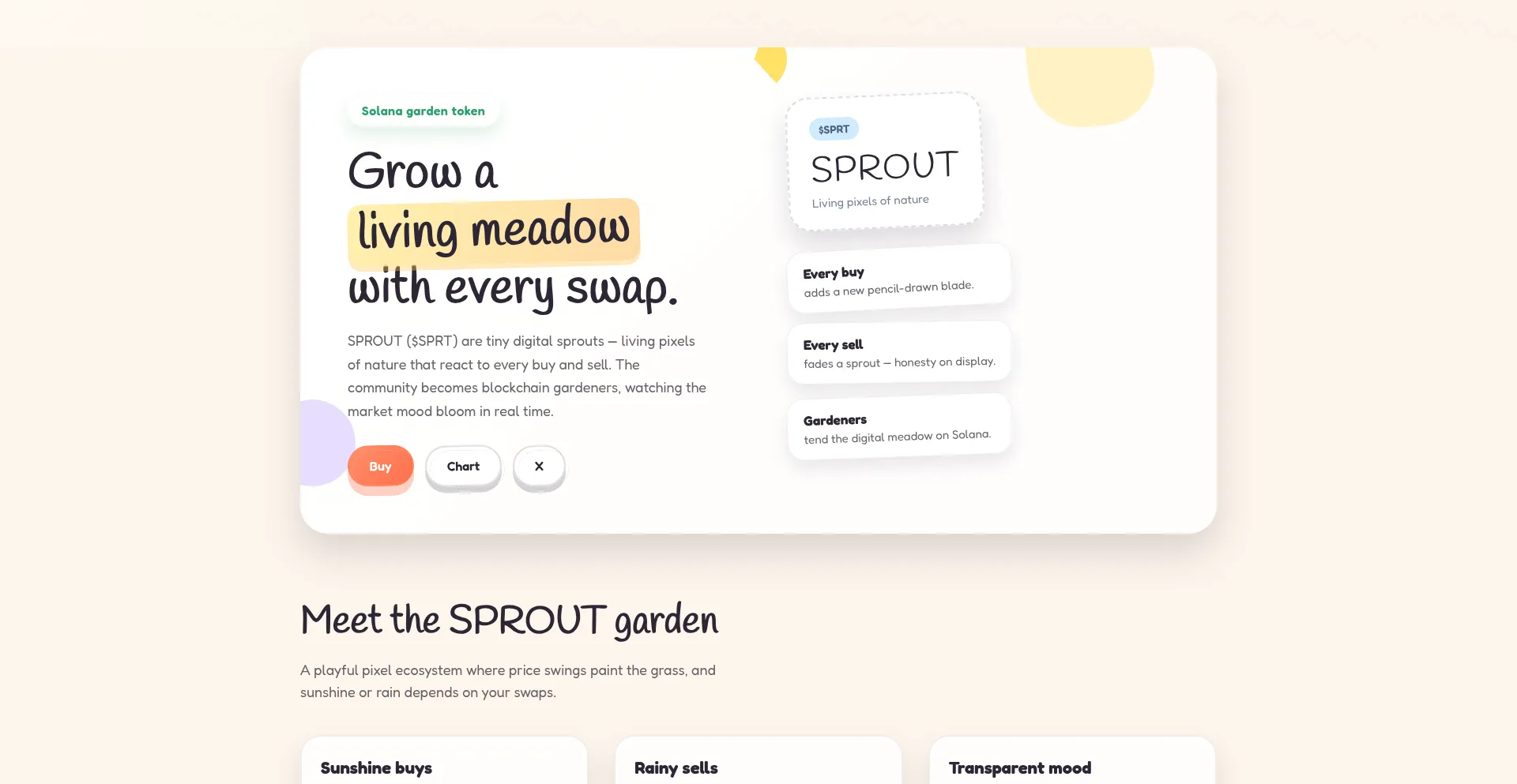 SPROUT ($SPRT) — живой цифровой луг Solana. Каждая сделка — новая травинка или тучка.
