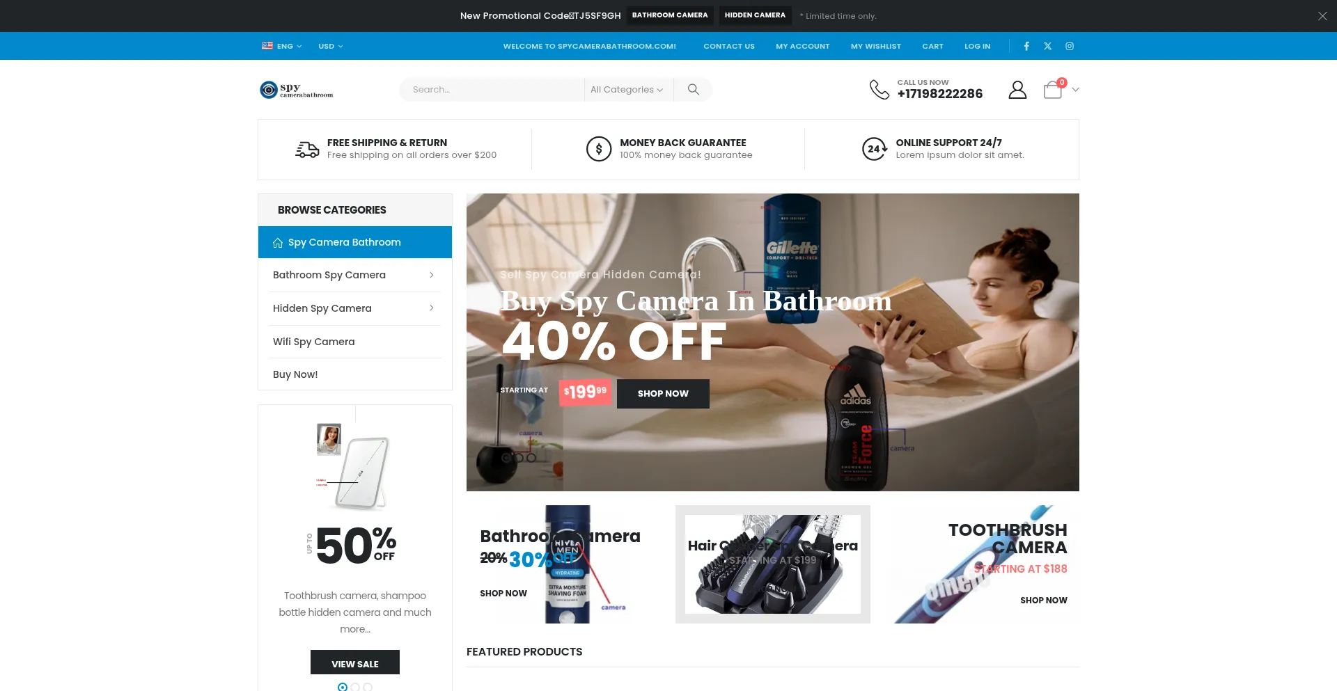 Analysis indicates that spycamerabathroom.com operates as an e-commerce platform facilitating online transactions for goods or services. The website implements shopping cart functionality, payment processing systems, and product catalog features typical of commercial retail operations.