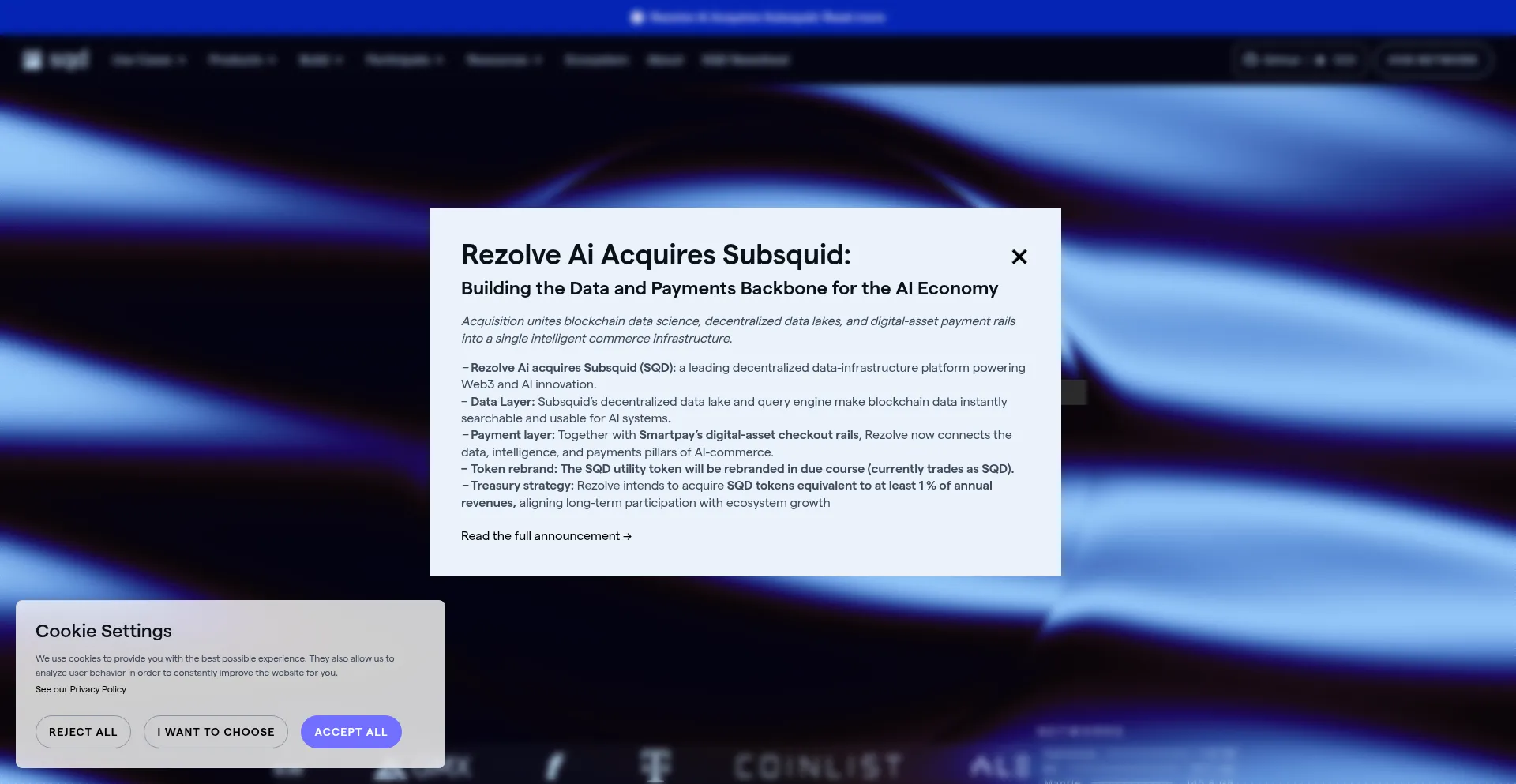 The website implements cookie consent mechanisms in compliance with privacy regulations such as GDPR or CCPA. This demonstrates that sqd.ai adheres to data protection standards and provides users with control over personal data collection practices.
