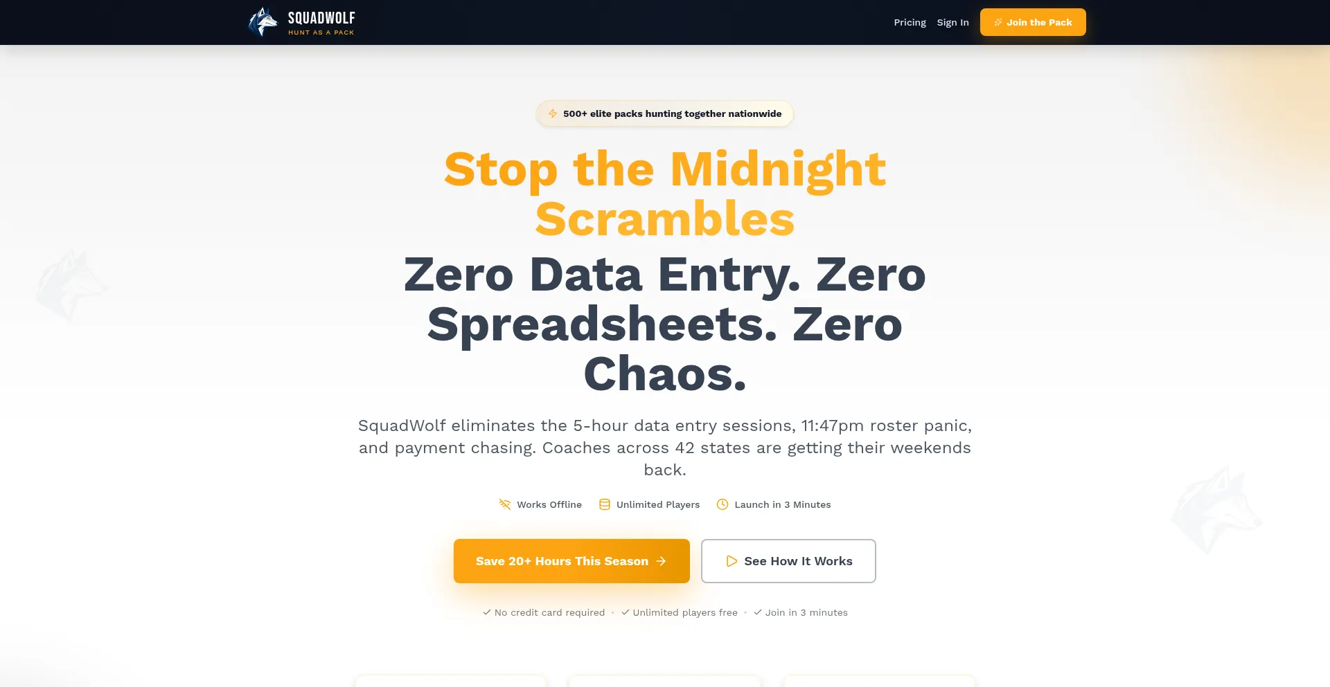 The squadwolf.com website implements data collection forms that may request personal information including names, email addresses, phone numbers, or other sensitive details. Users should verify the legitimacy of it and review privacy policies before submitting personal data.