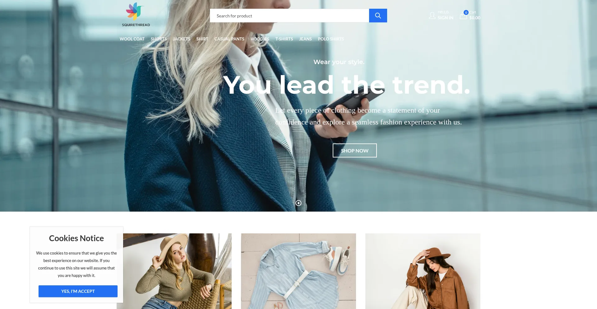 The website implements cookie consent mechanisms in compliance with privacy regulations such as GDPR or CCPA. This demonstrates that squirethread.shop adheres to data protection standards and provides users with control over personal data collection practices.