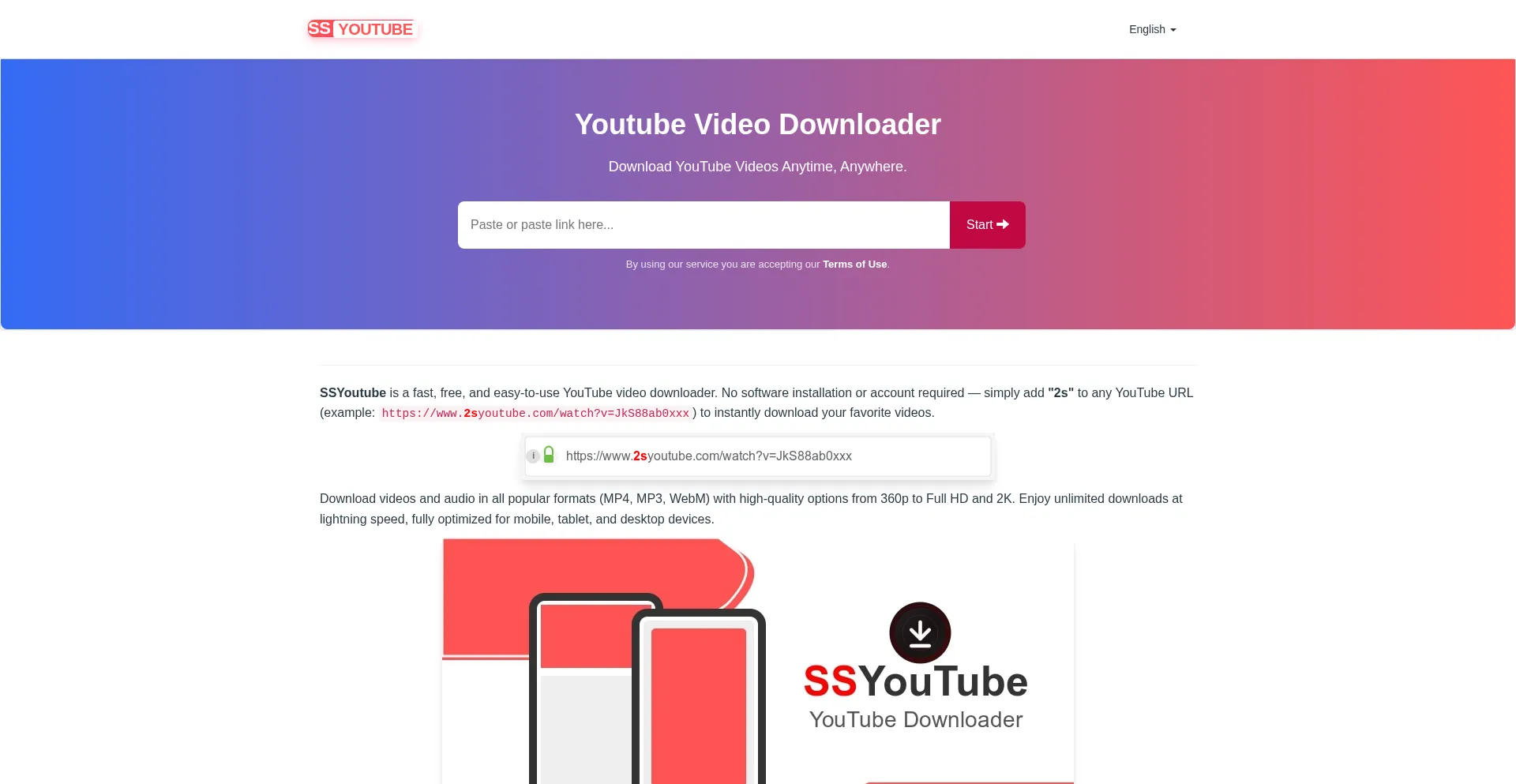 SSYouTube is a fast, free YouTube Video Downloader. Download and save YouTube videos online in MP4 or MP3, from SD, HD up to 2K – easy, secure, unlimited.