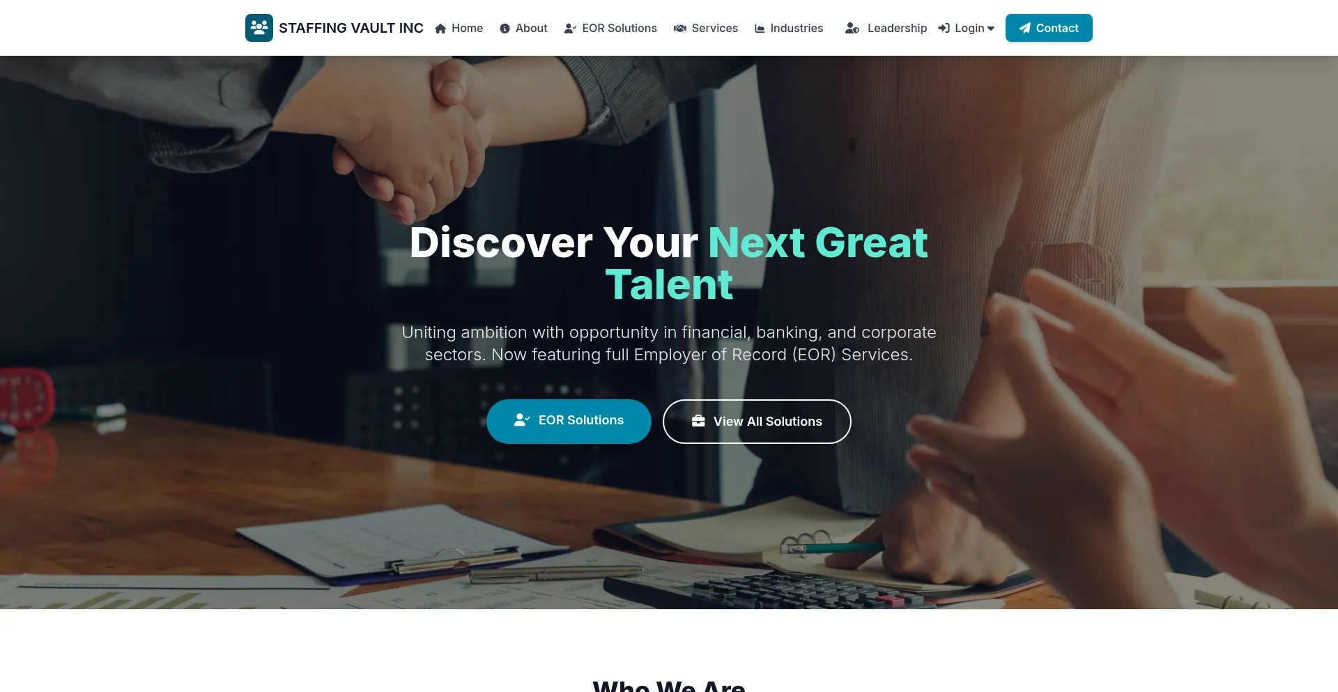 The staffingvaultinc.com website provides financial services including investment management, wealth advisory, or financial planning solutions. Services may encompass portfolio management, investment opportunities, financial consulting, or asset growth strategies for individual and institutional clients.