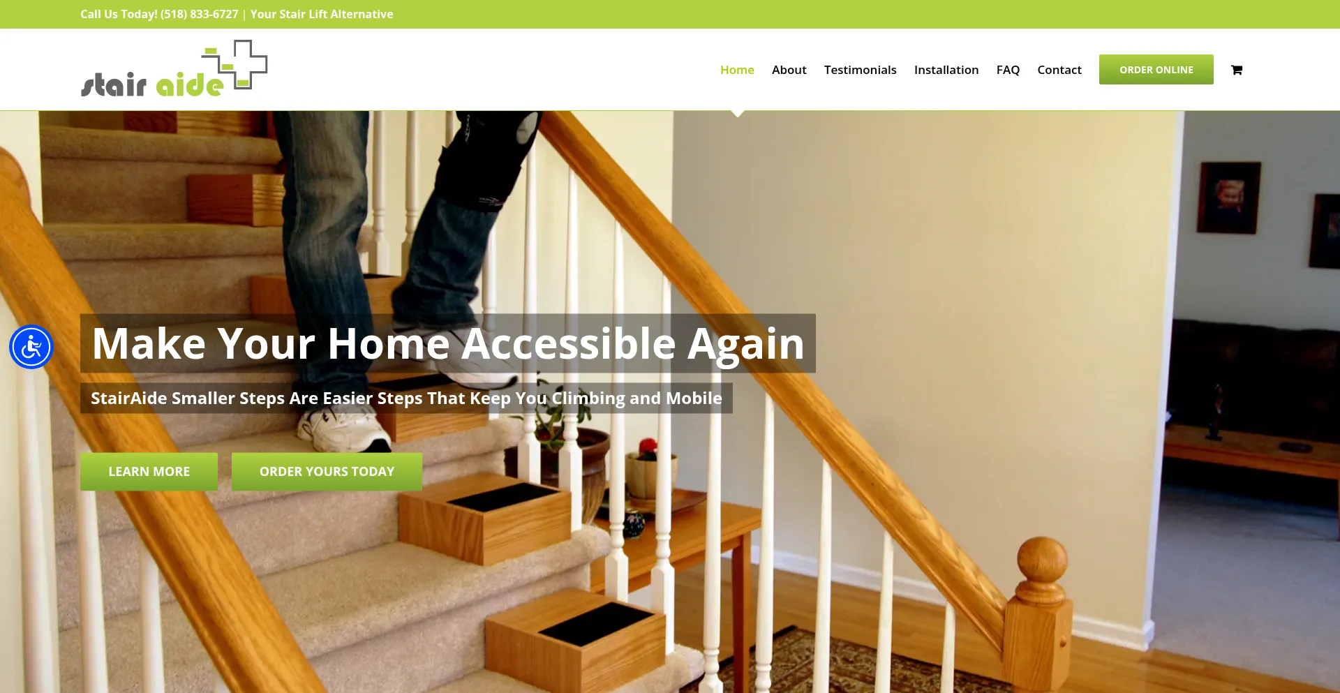 Make your home accessible and use your stairs again! StairAide provides a stair lift alternative with smaller steps that keep you climbing and mobile.