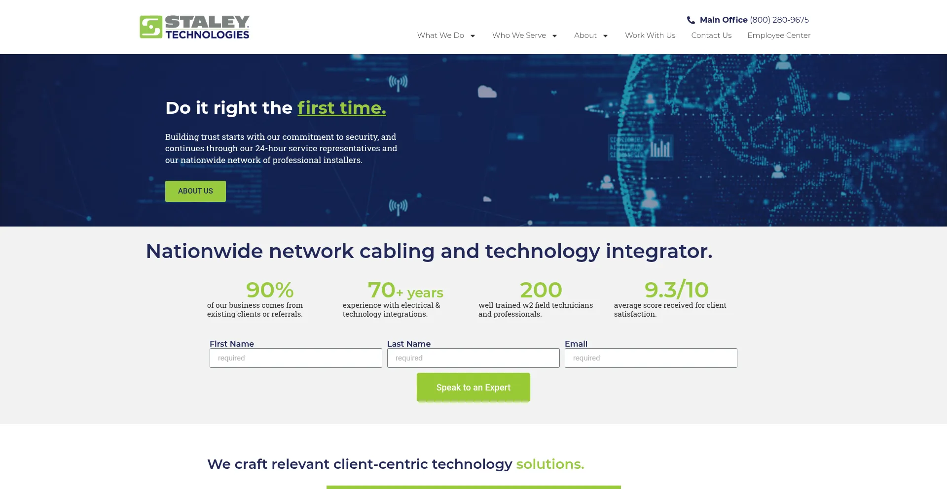 We are a nationwide cabling, wireless and technology integrator. We Do It Right The First Time. Stay Relevant by partnering with Staley Technologies.