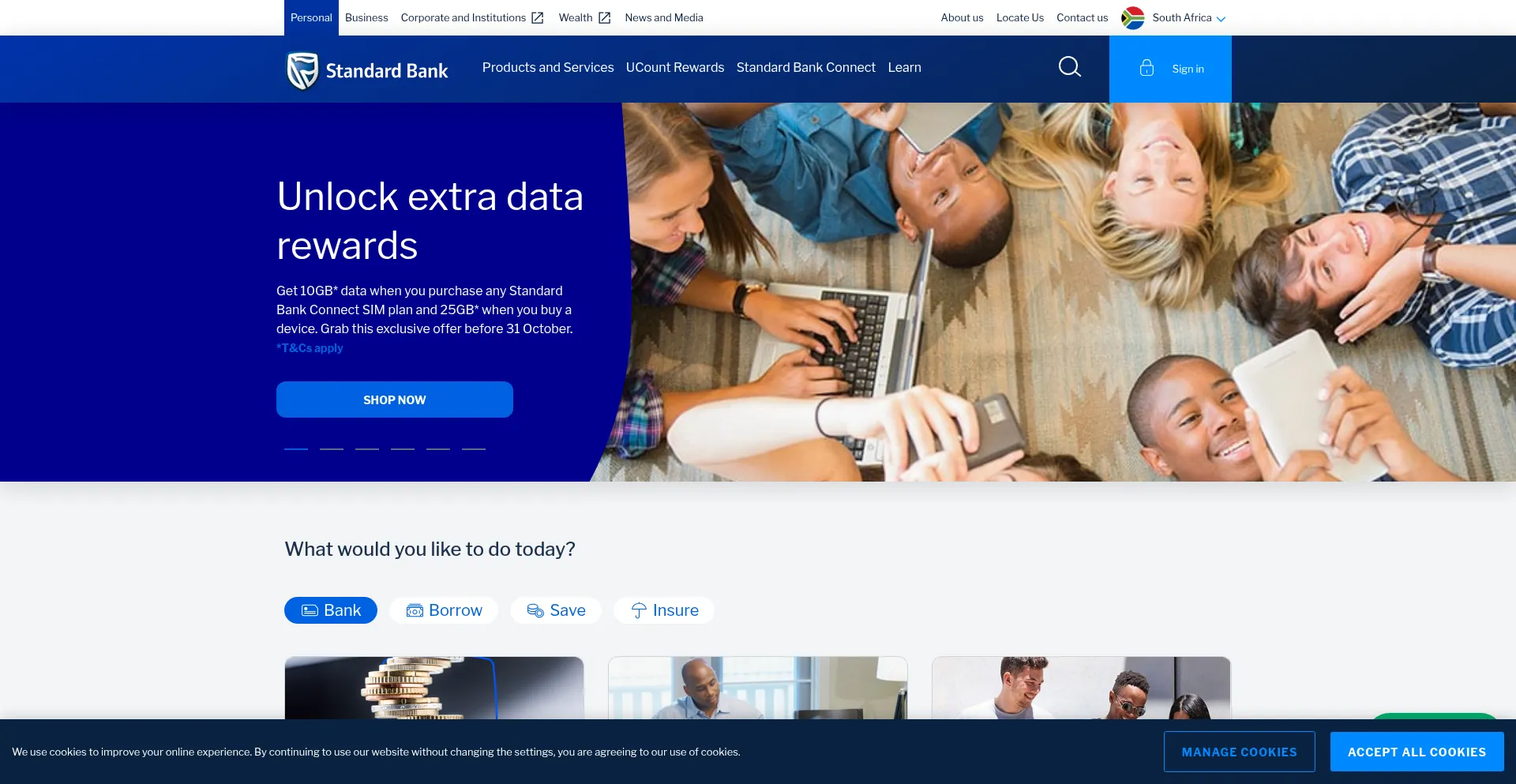 The website implements cookie consent mechanisms in compliance with privacy regulations such as GDPR or CCPA. This demonstrates that standardbank.co.za adheres to data protection standards and provides users with control over personal data collection practices.