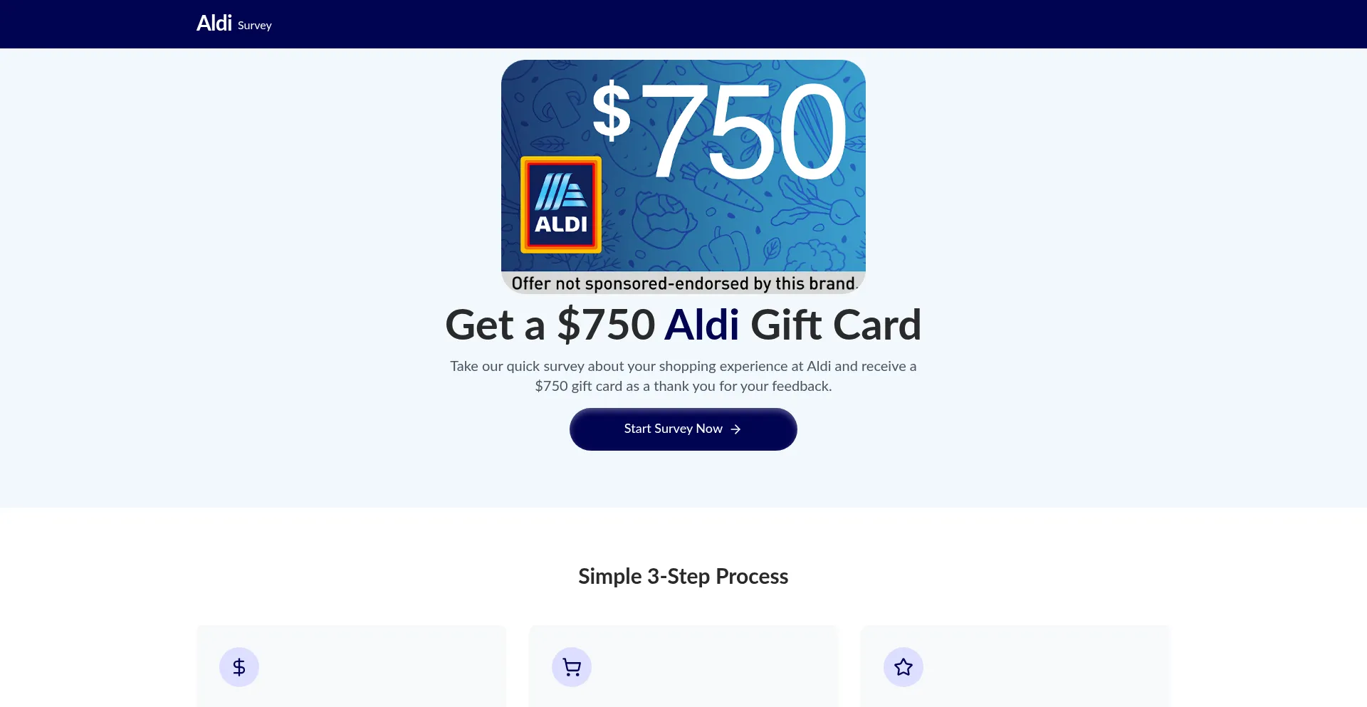 Take our quick survey about your shopping experience at Aldi and receive a $750 gift card as a thank you for your feedback.