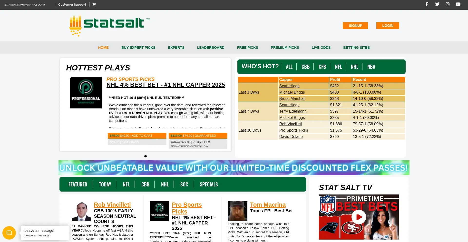 Daily free picks, parlay ideas, expert predictions, and premium Sports Betting Tipsters. Compare odds, track streaks, and win smarter with StatSalt.