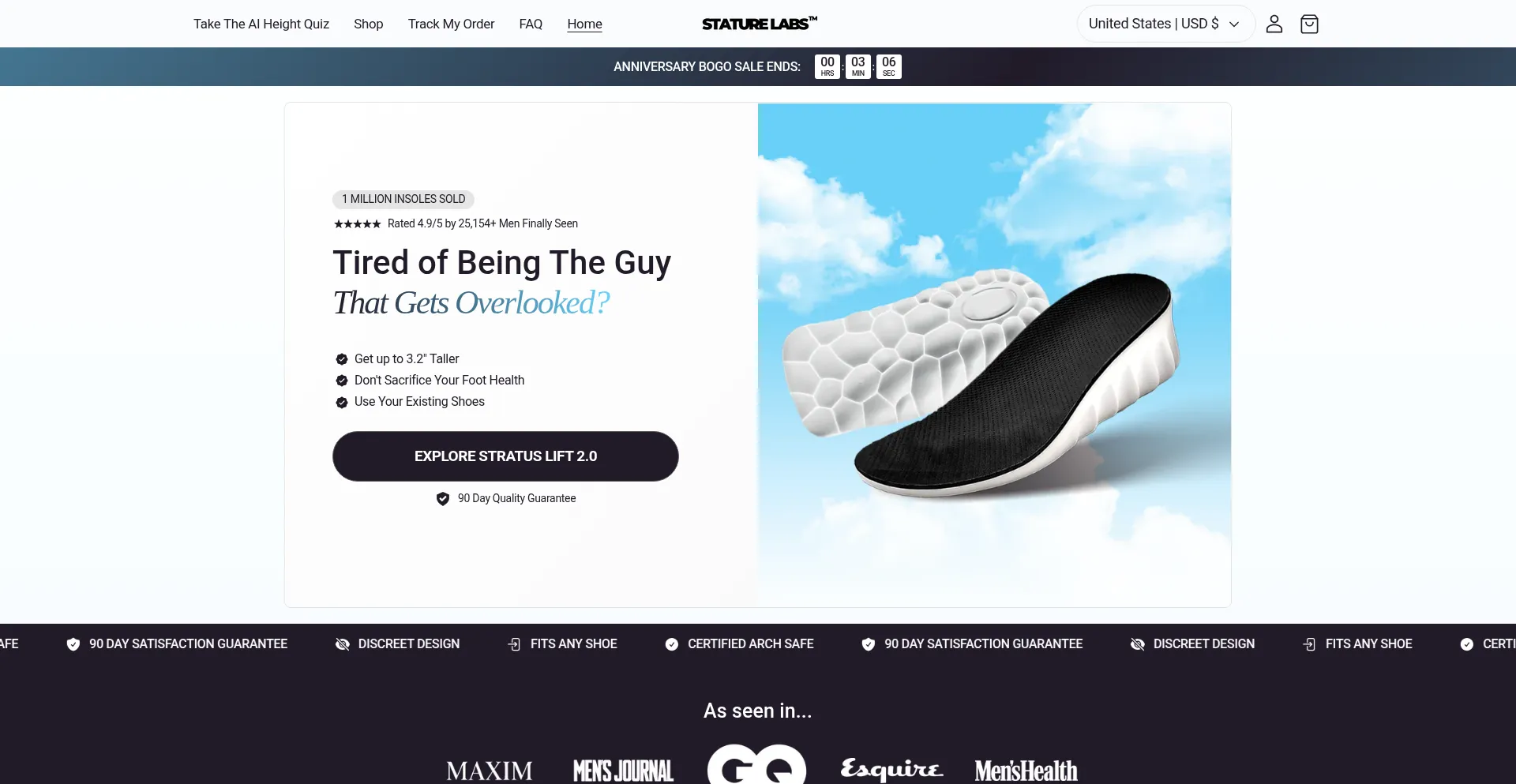 Analysis indicates that staturelabs.com operates as an e-commerce platform facilitating online transactions for goods or services. The website implements shopping cart functionality, payment processing systems, and product catalog features typical of commercial retail operations.
