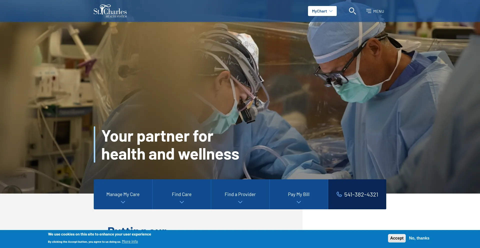 The website implements cookie consent mechanisms in compliance with privacy regulations such as GDPR or CCPA. This demonstrates that stcharleshealthcare.org adheres to data protection standards and provides users with control over personal data collection practices.