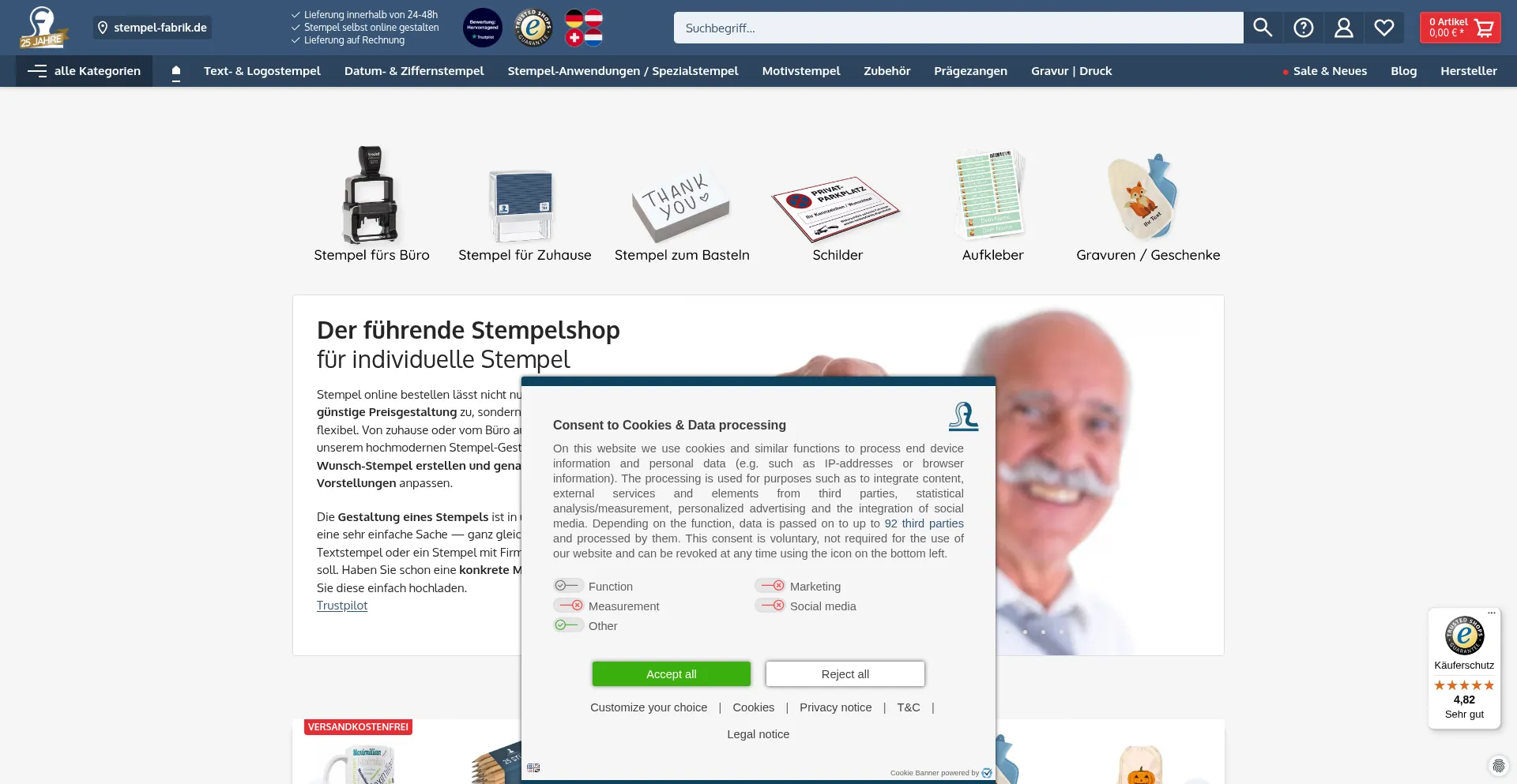 The website implements cookie consent mechanisms in compliance with privacy regulations such as GDPR or CCPA. This demonstrates that stempel-fabrik.de adheres to data protection standards and provides users with control over personal data collection practices.