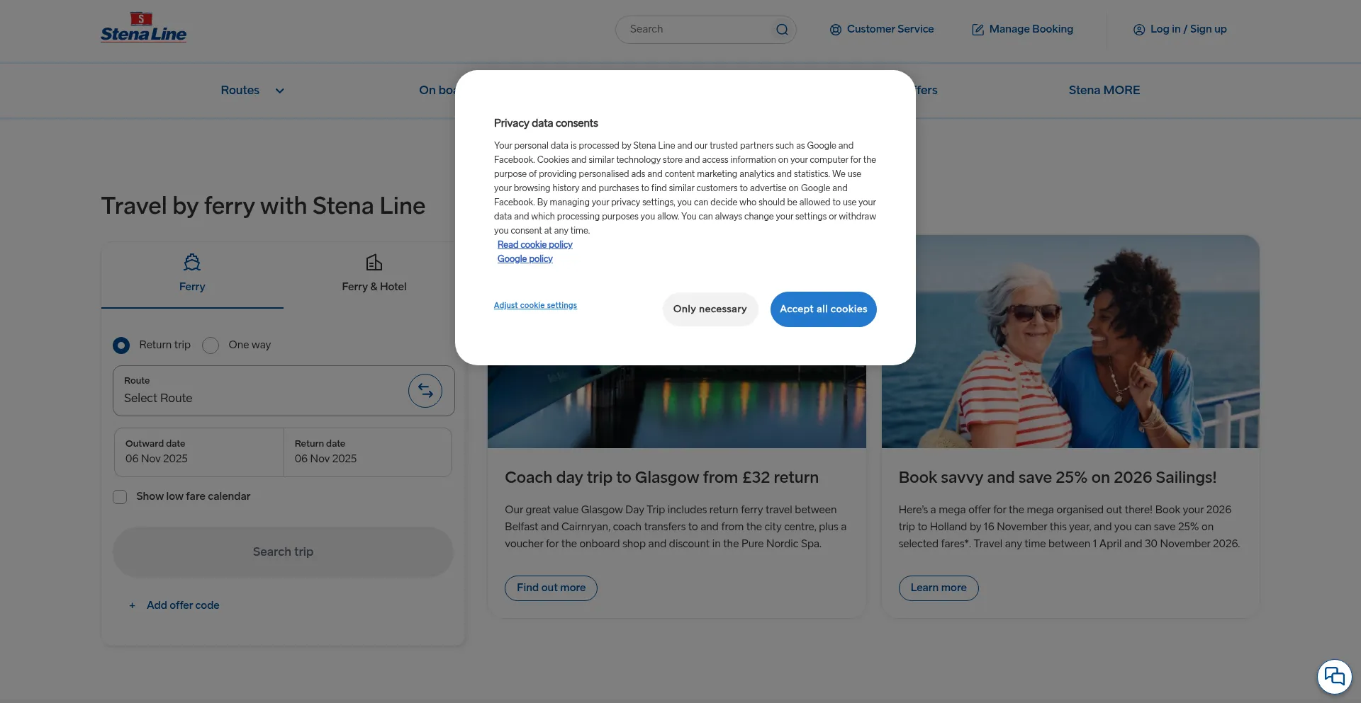 The website implements cookie consent mechanisms in compliance with privacy regulations such as GDPR or CCPA. This demonstrates that stenaline.co.uk adheres to data protection standards and provides users with control over personal data collection practices.