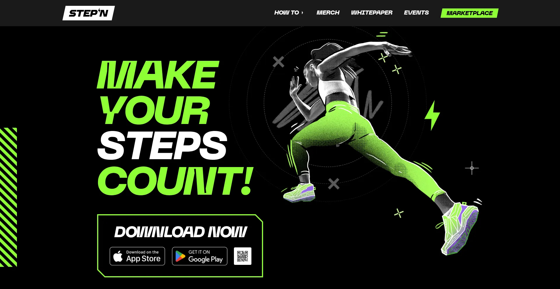 The stepn.com website offers a mobile application for Android devices, indicating expanded platform presence beyond web-based services.