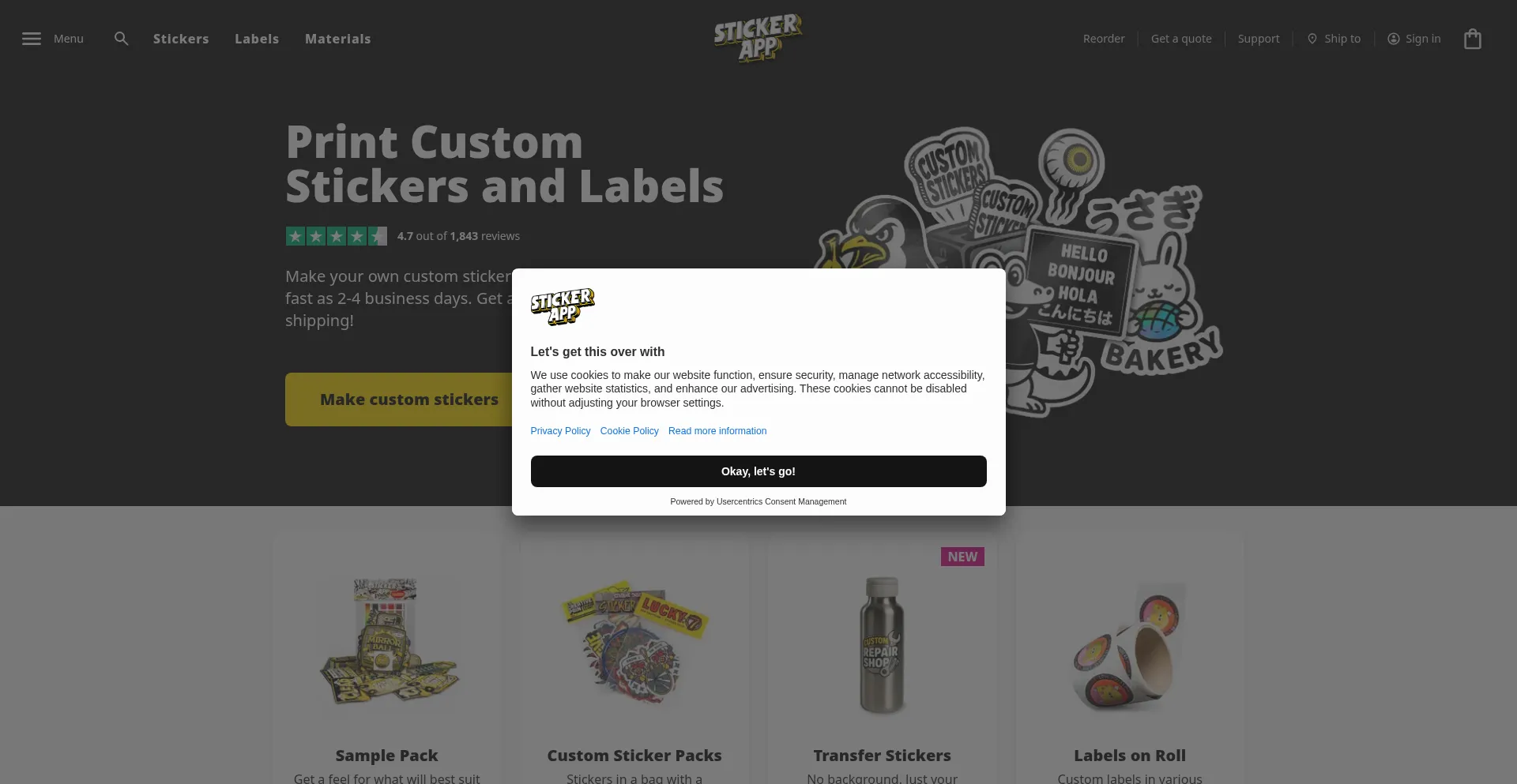 Analysis indicates that stickerapp.co.uk operates as an e-commerce platform facilitating online transactions for goods or services. The website implements shopping cart functionality, payment processing systems, and product catalog features typical of commercial retail operations.