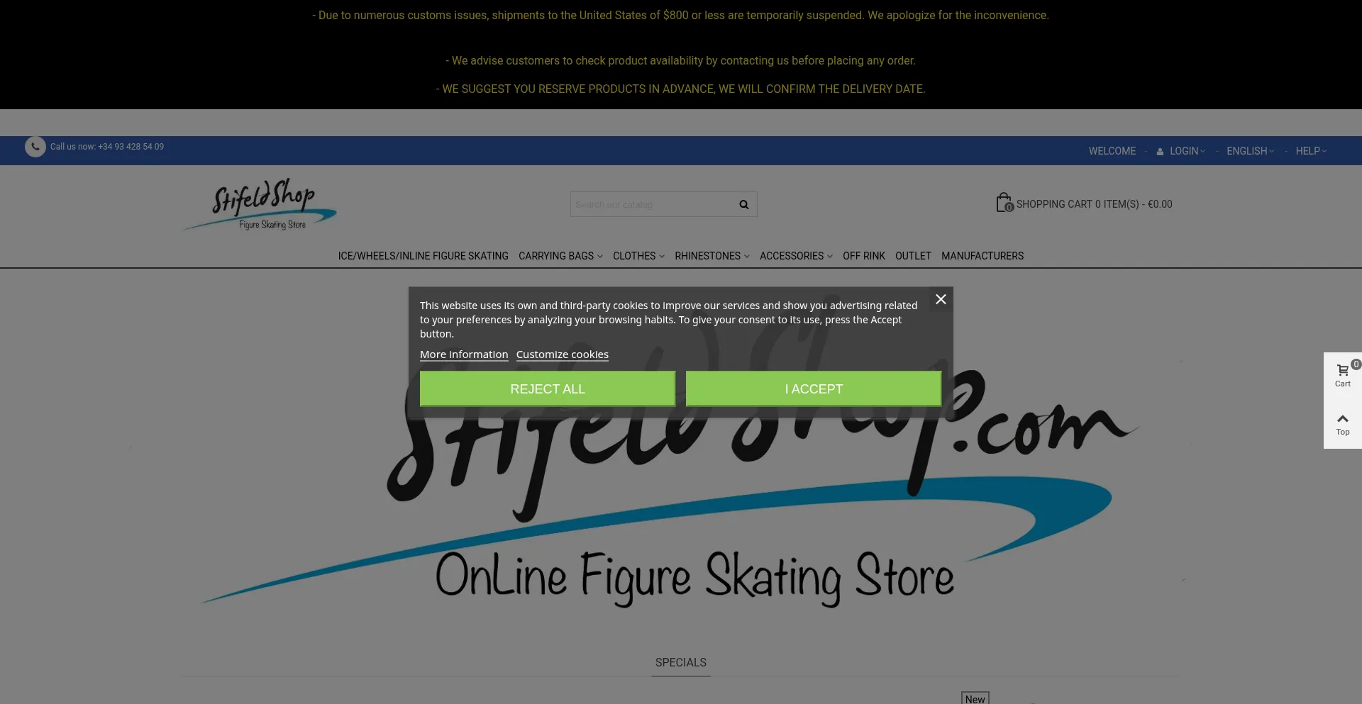StifeldShop Online figure skating store in Barcelona, sale and distribution of articles for formative, federated and professional figure skating, accessories and clothing.