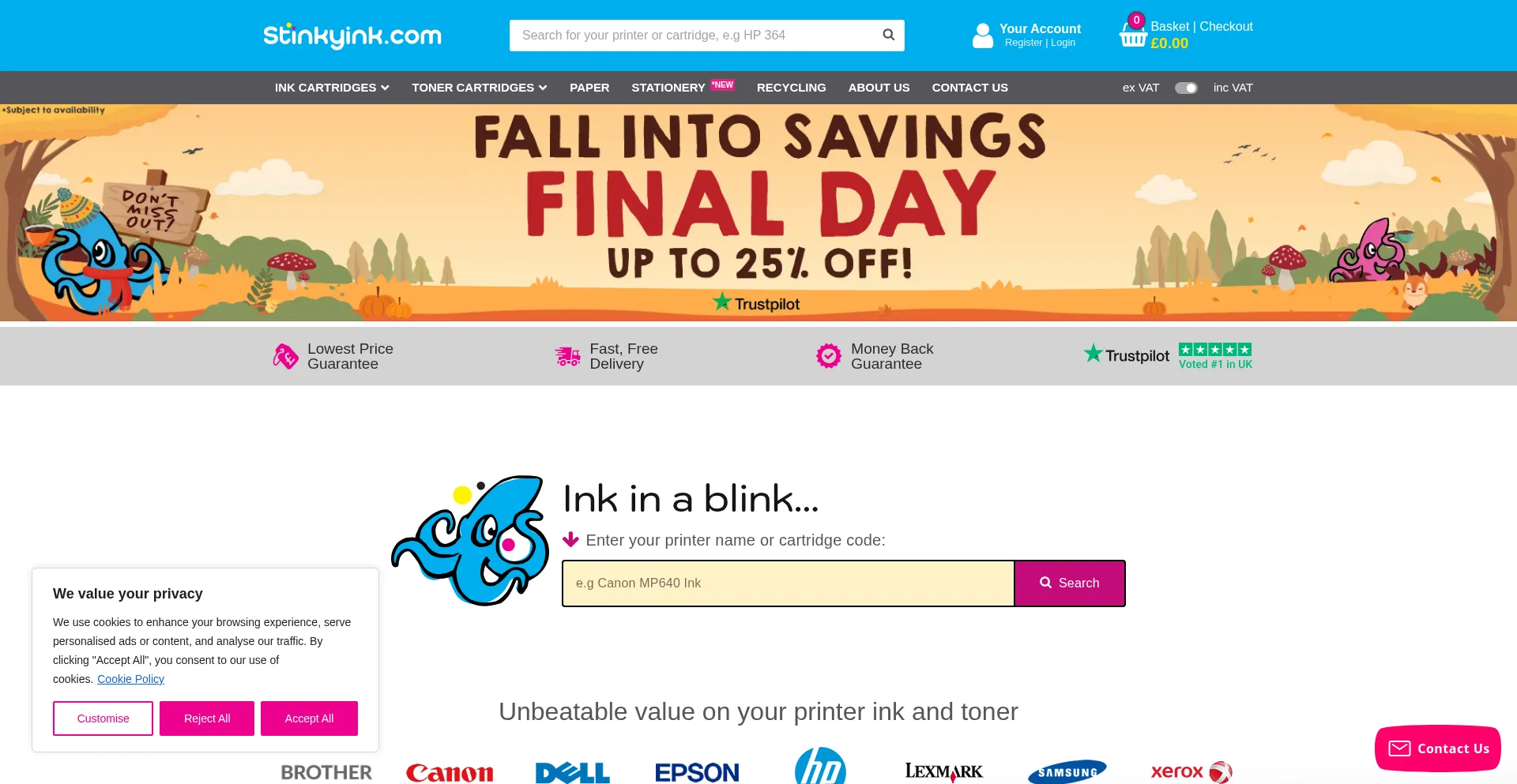 Printer Ink Cartridges - Fast, Free Delivery - Stinkyink