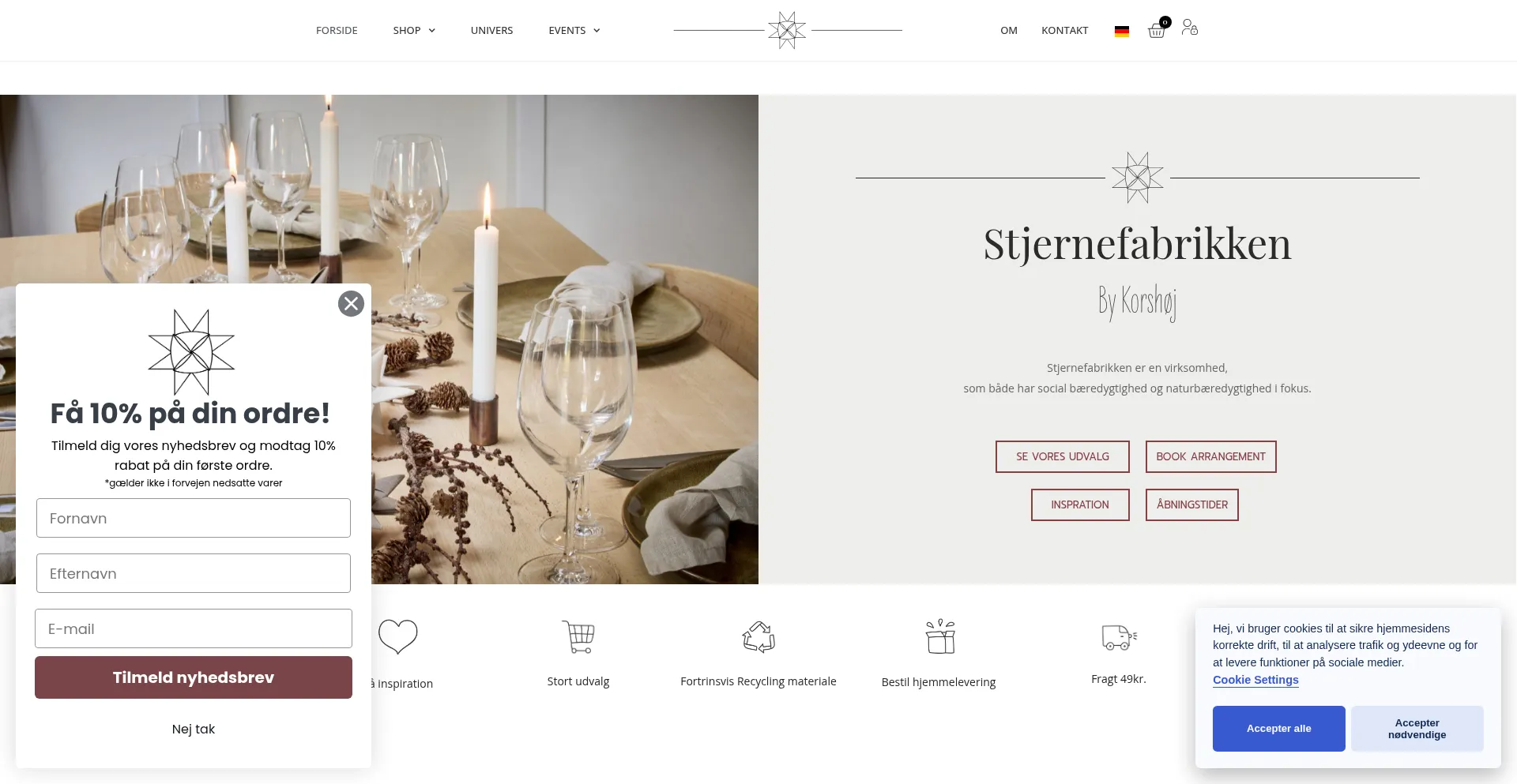 The website implements cookie consent mechanisms in compliance with privacy regulations such as GDPR or CCPA. This demonstrates that stjernefabrikken.dk adheres to data protection standards and provides users with control over personal data collection practices.