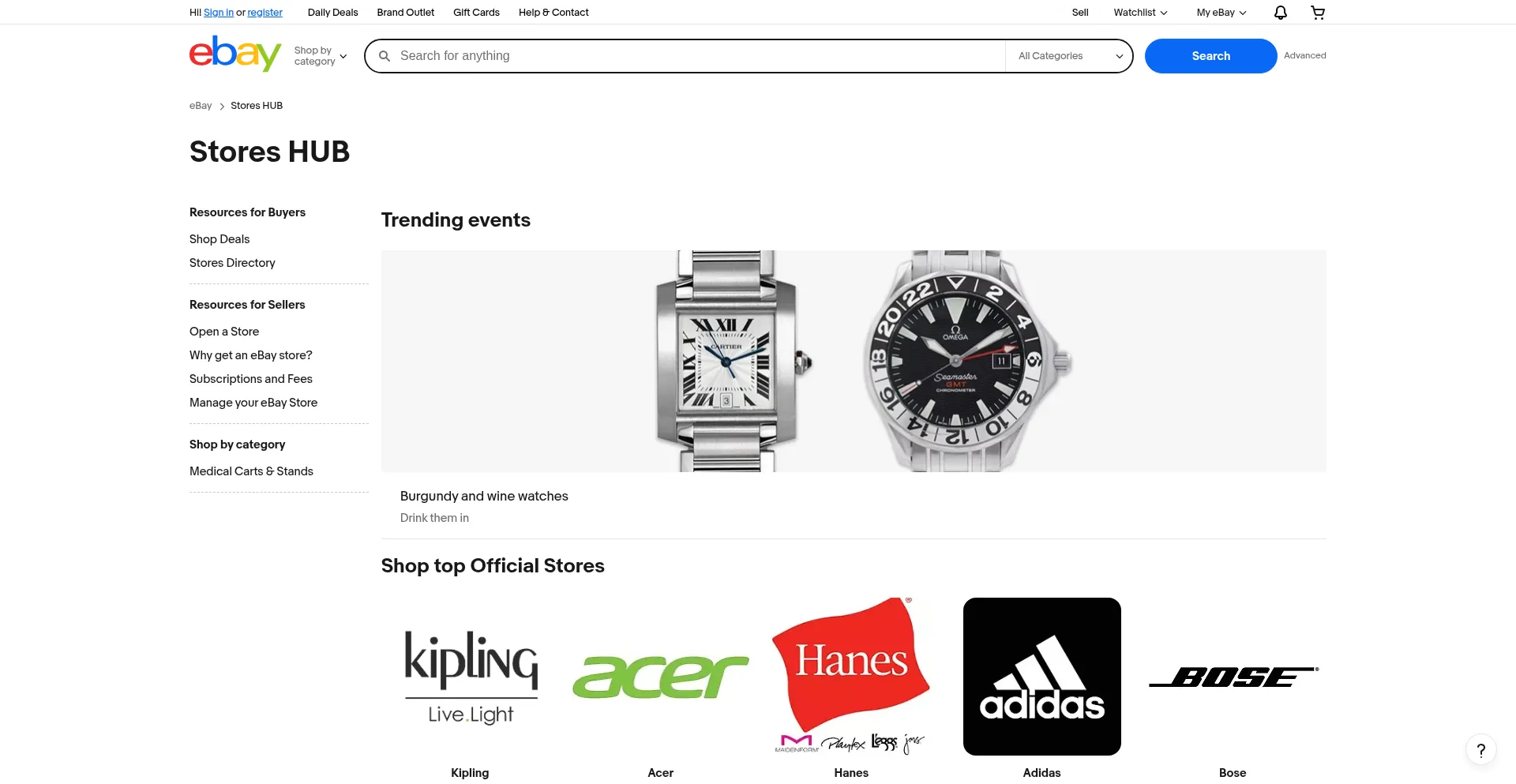 Analysis indicates that stores.ebay.com operates as an e-commerce platform facilitating online transactions for goods or services. The website implements shopping cart functionality, payment processing systems, and product catalog features typical of commercial retail operations.