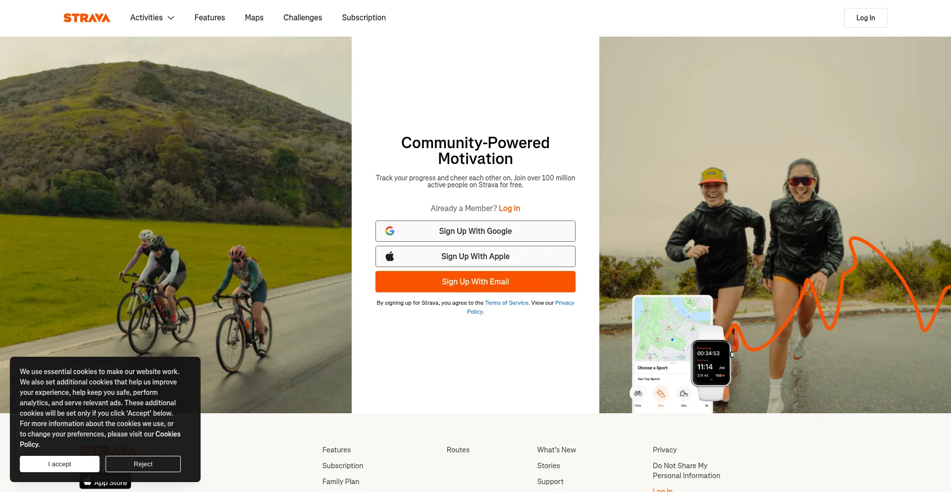 The website implements cookie consent mechanisms in compliance with privacy regulations such as GDPR or CCPA. This demonstrates that strava.com adheres to data protection standards and provides users with control over personal data collection practices.