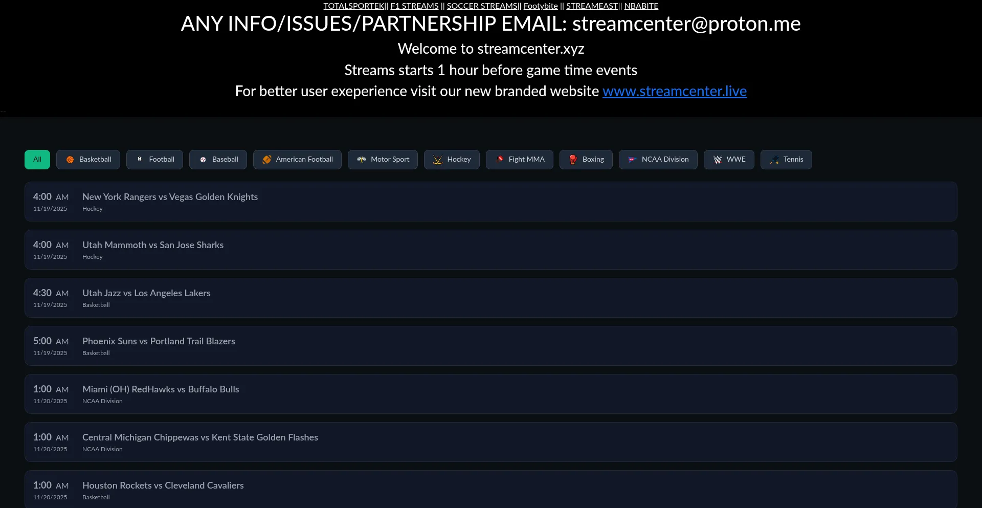 Streamcenter.xyz operates as a suspicious website with multiple red flags that compromise its trustworthiness and user safety. The platform exhibits concerning characteristics including misleading information, questionable operational practices, or potential malware distribution that poses significant risks to visitors.