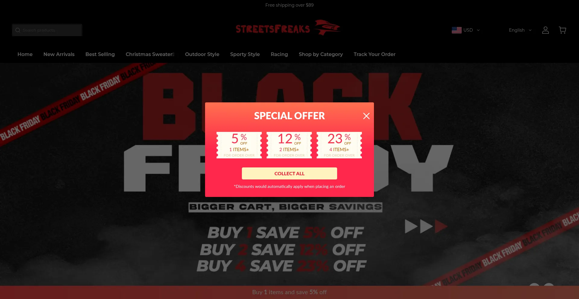 The website leverages popular product names and brands to attract traffic and generate user interest. These products may be offered through promotional campaigns or discount strategies designed to increase visitor engagement and conversion rates for streetsfreaks.com.