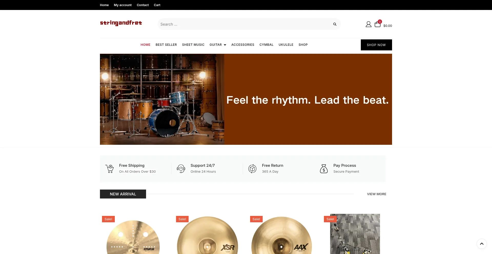 Analysis indicates that stringandfret.com operates as an e-commerce platform facilitating online transactions for goods or services. The website implements shopping cart functionality, payment processing systems, and product catalog features typical of commercial retail operations.
