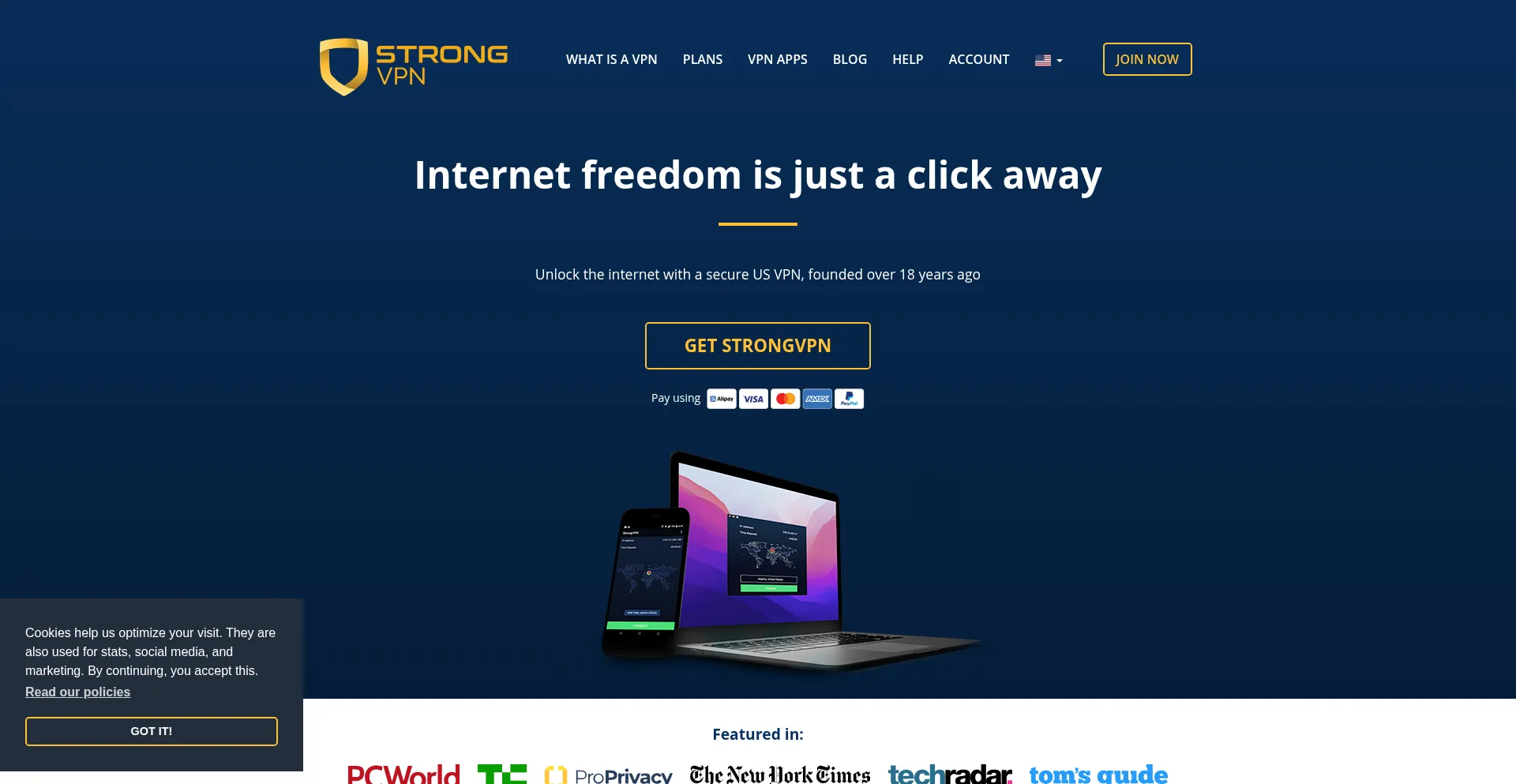 StrongVPN.com - Providing high speed, unthrottled bandwidth, multiple countries VPN accounts for over 100,000 users. Since 1995.
