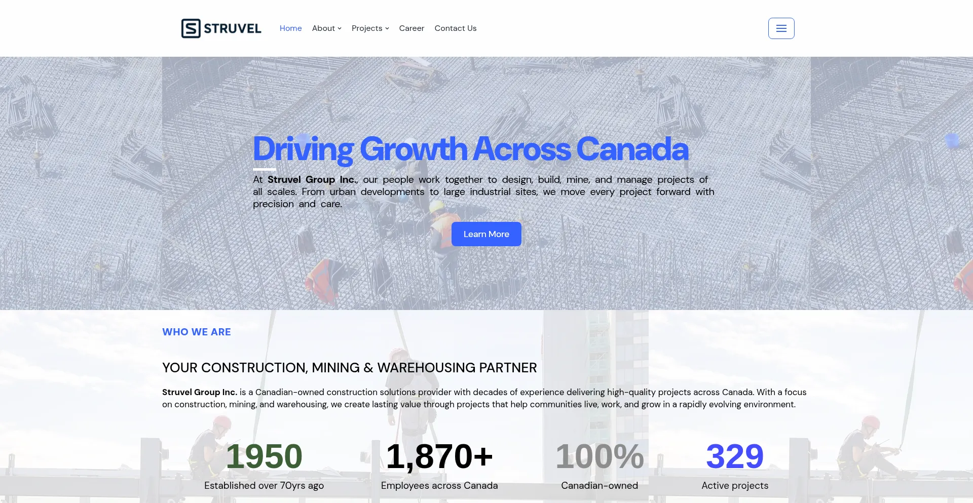 Struvel Group Inc. delivers trusted construction, mining, and warehousing solutions across Canada β€” focused on safety, quality, and sustainable growth.