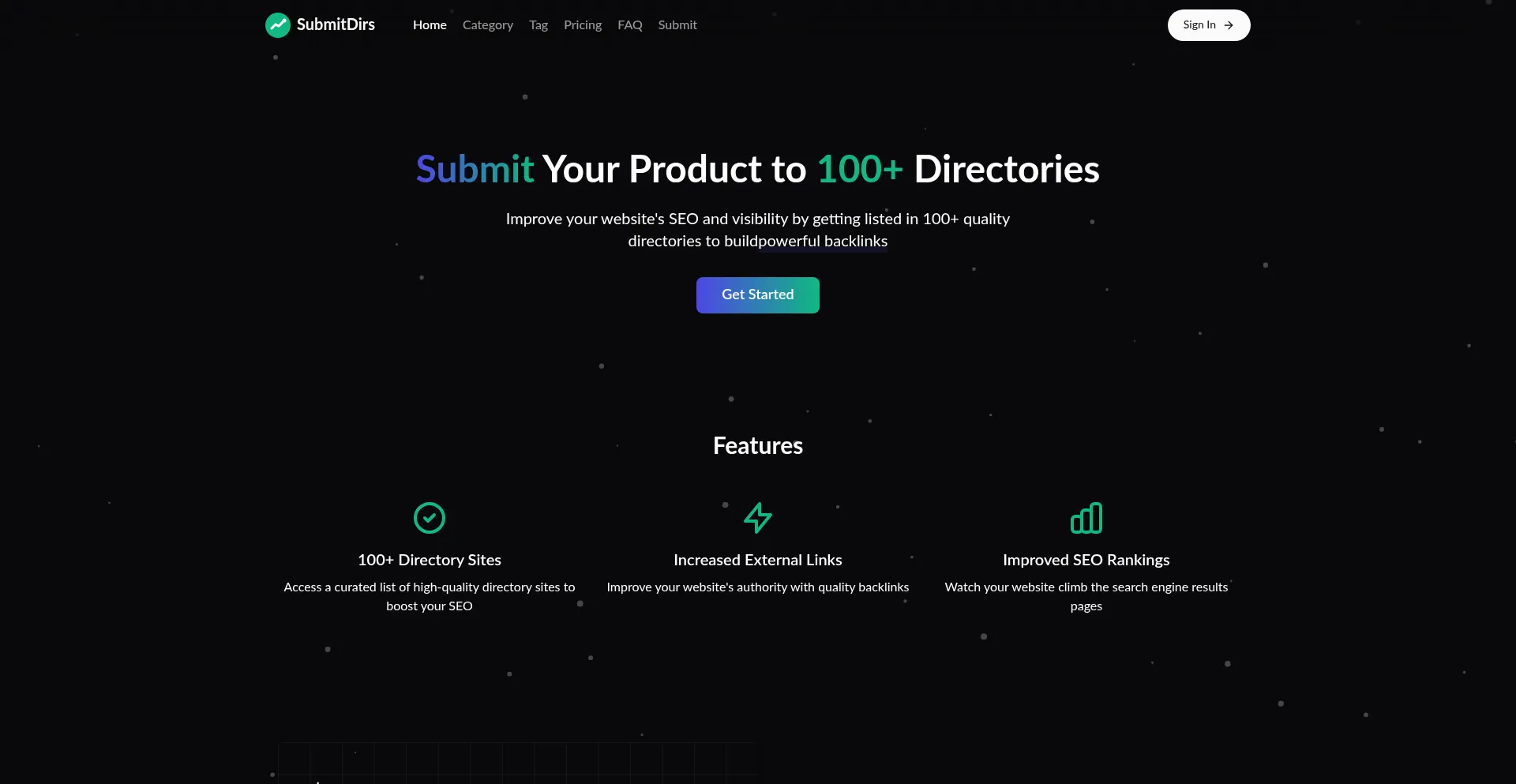 SubmitDirs helps you improve your website's SEO by submitting it to 100+ directory sites, increasing external links and visibility.