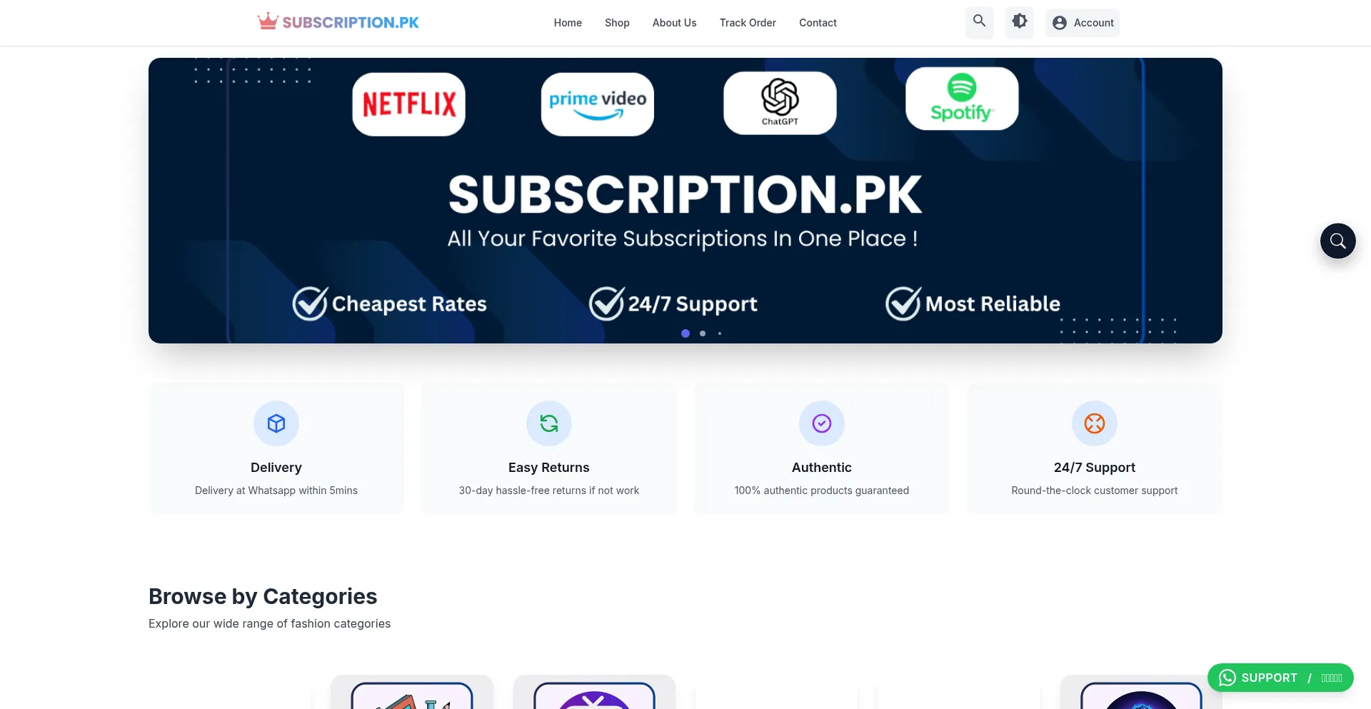Analysis indicates that subscription.pk operates as an e-commerce platform facilitating online transactions for goods or services. The website implements shopping cart functionality, payment processing systems, and product catalog features typical of commercial retail operations.
