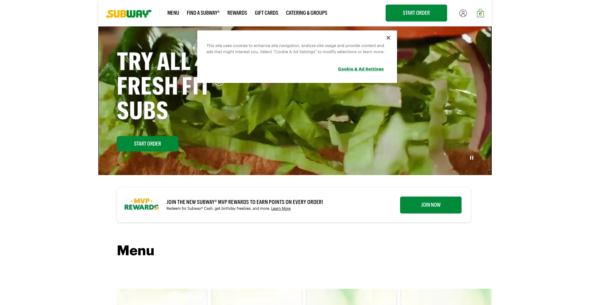 The website implements cookie consent mechanisms in compliance with privacy regulations such as GDPR or CCPA. This demonstrates that subway.com adheres to data protection standards and provides users with control over personal data collection practices.