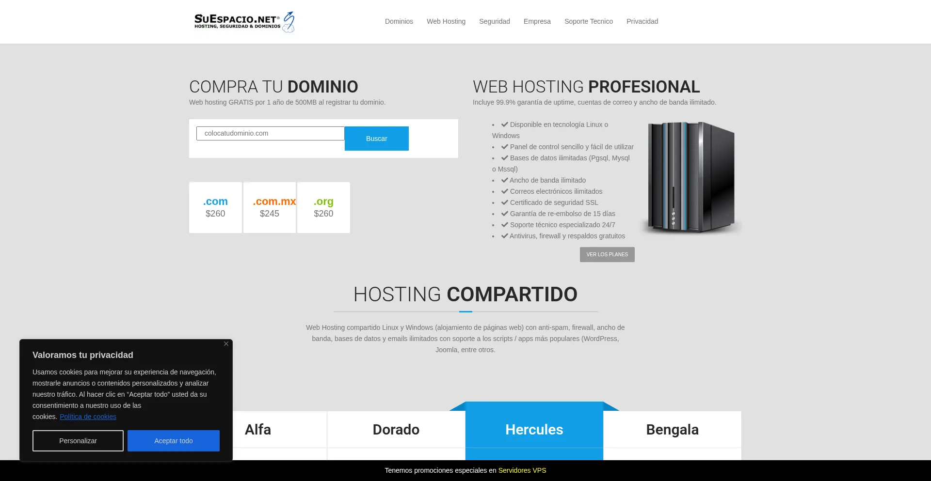 Web Hosting, VPS, Servidores Dedicados, SSL y Dominios - SuEspacio.net