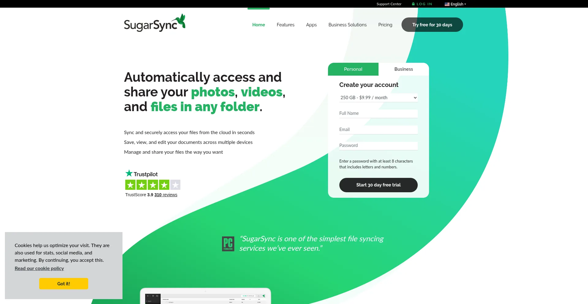 sugarsync.com has a good Trustpilot score (3.9) based on 310 reviews, indicating a high level of trust from customers. It is a good sign of legitimacy!