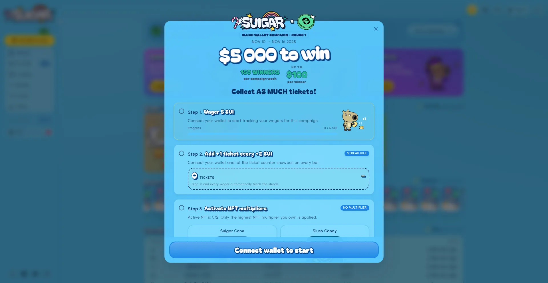 Join Suigar, the top game suite on Sui! Dive into a sugary world of Coinflip, Lootboxes, and NFTs. Partner with the Suifrens to earn Sui and embark on an exciting adventure today!