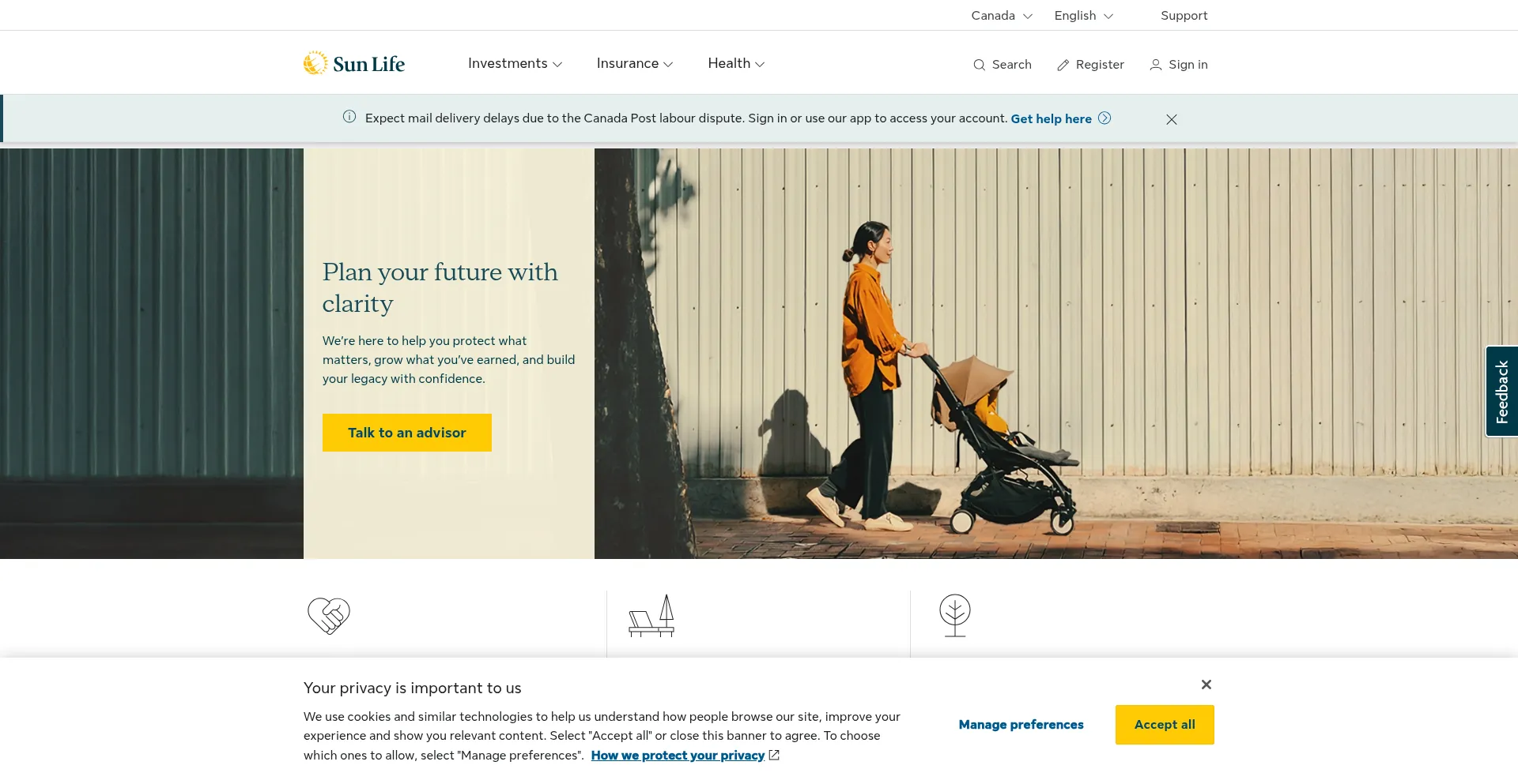The sunlife.ca website provides financial services including investment management, wealth advisory, or financial planning solutions. Services may encompass portfolio management, investment opportunities, financial consulting, or asset growth strategies for individual and institutional clients.