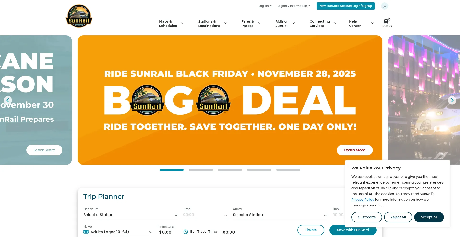 The website implements cookie consent mechanisms in compliance with privacy regulations such as GDPR or CCPA. This demonstrates that sunrail.com adheres to data protection standards and provides users with control over personal data collection practices.