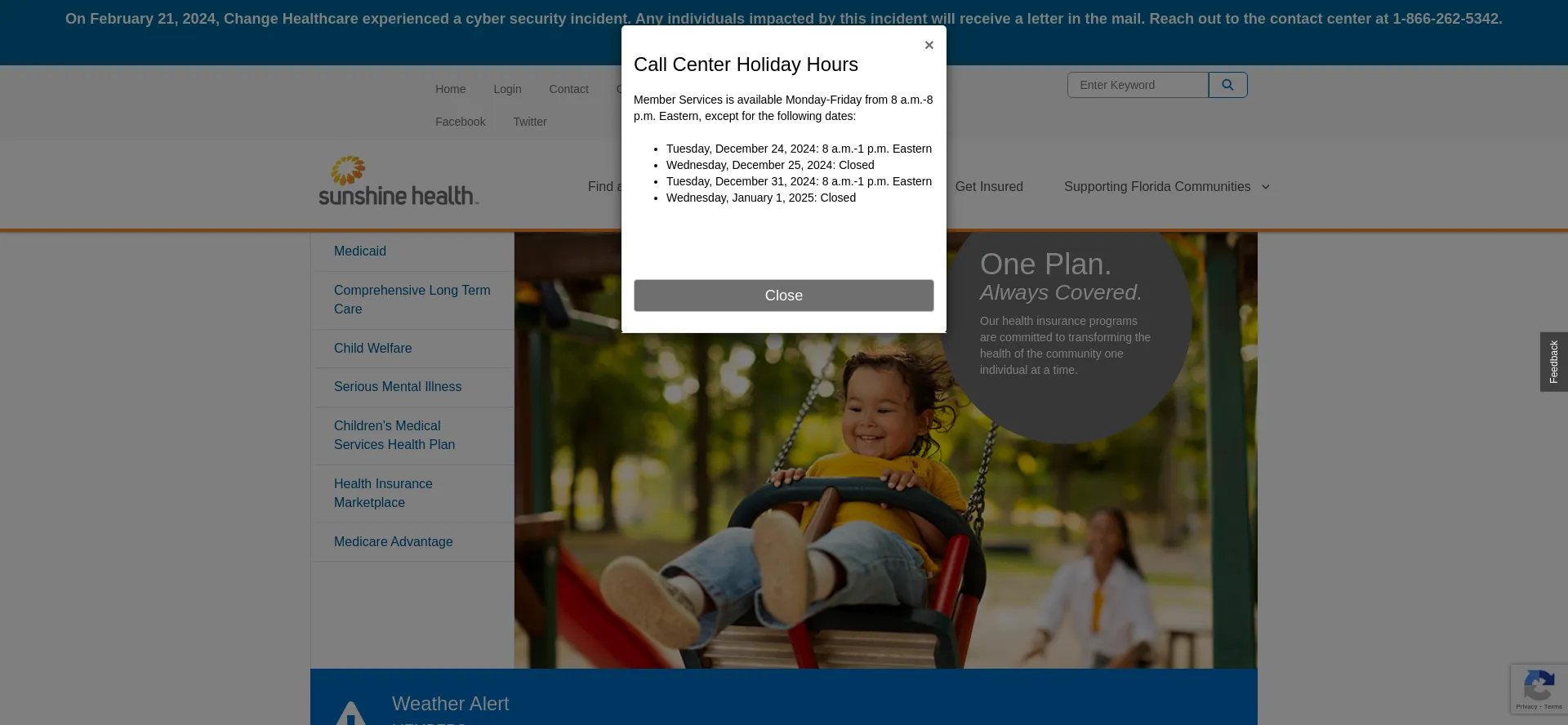 Sunshine Health offers affordable Florida Medicaid, Medicare Plans and our Health Insurance Marketplace product, Ambetter. Get covered with Sunshine Health today.