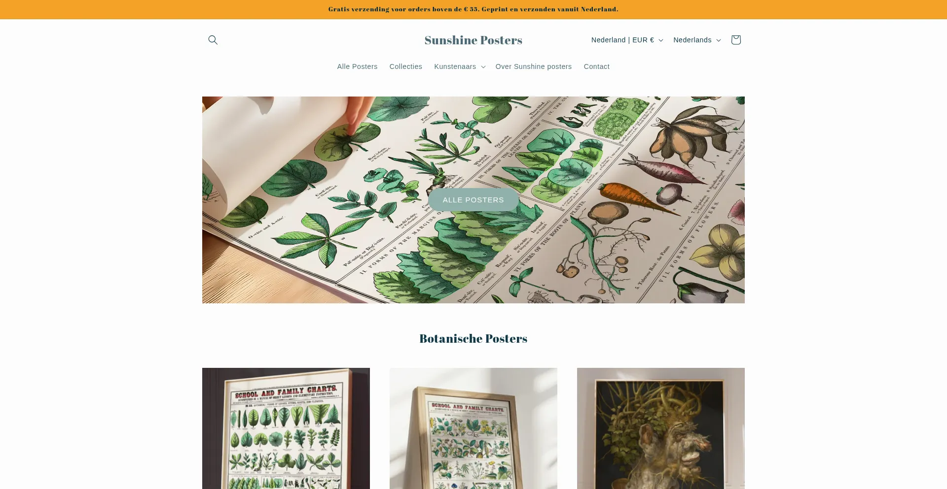 Analysis indicates that sunshineposters.nl operates as an e-commerce platform facilitating online transactions for goods or services. The website implements shopping cart functionality, payment processing systems, and product catalog features typical of commercial retail operations.