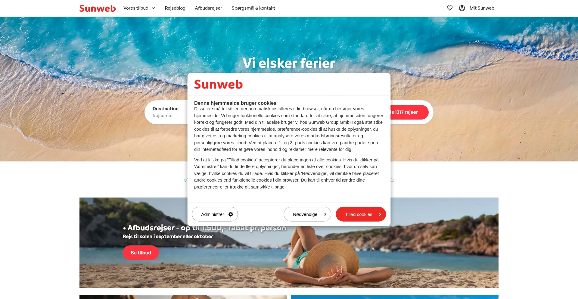 The website implements cookie consent mechanisms in compliance with privacy regulations such as GDPR or CCPA. This demonstrates that sunweb.dk adheres to data protection standards and provides users with control over personal data collection practices.