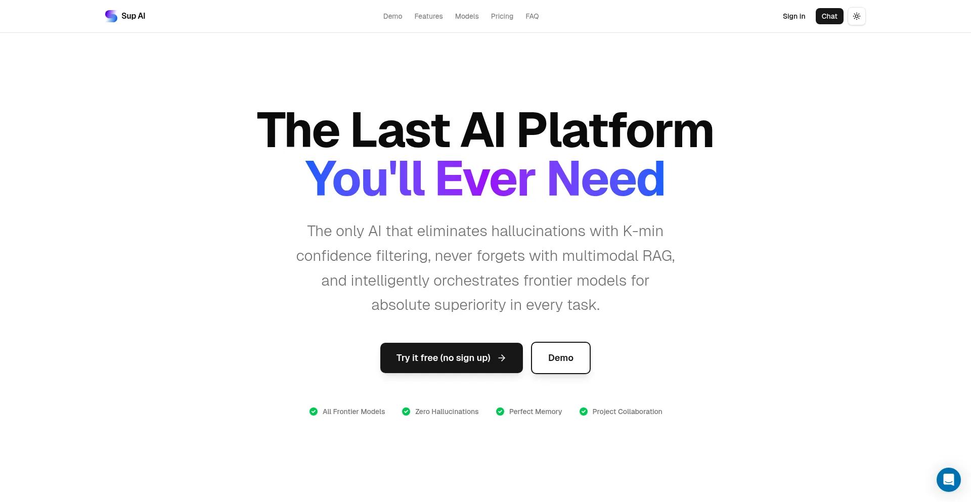 The only AI that eliminates hallucinations with K-min confidence filtering, never forgets with multimodal RAG, and intelligently orchestrates frontier models for absolute superi...